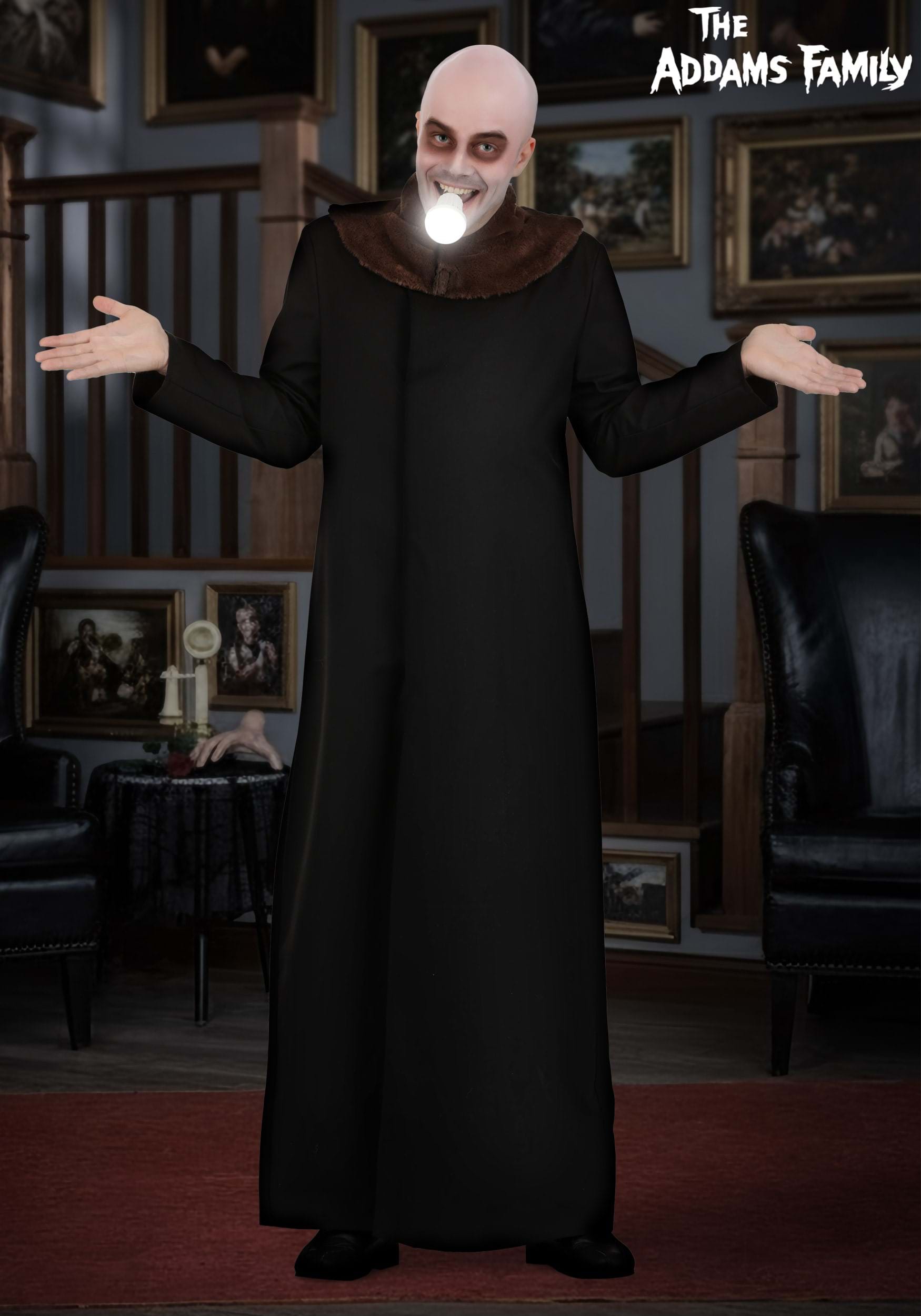 He’s bald, bizarre, and probably just tried to charge your phone with his teeth. Now you can bring the weirdly lovable energy of the original Uncle Fester to life with this officially licensed 1960s Addams Family Costume. Based on the classic TV series, this look channels everything charmingly creepy about everyone's favorite eccentric uncle—with the added bonus of a glowing light bulb for peak Fester flair.