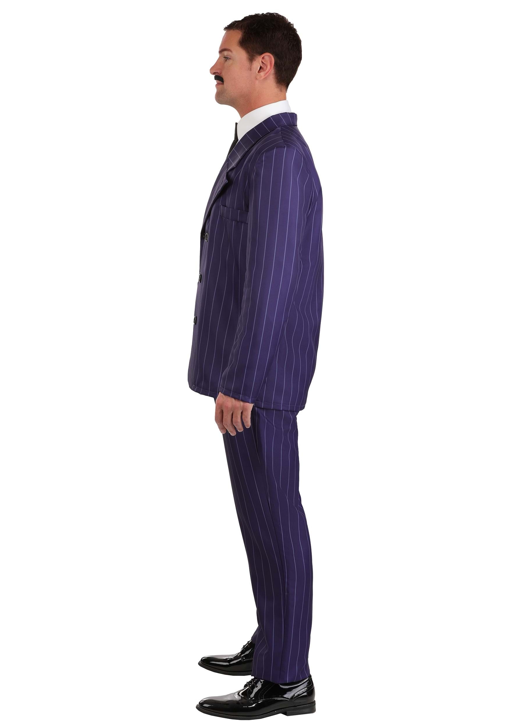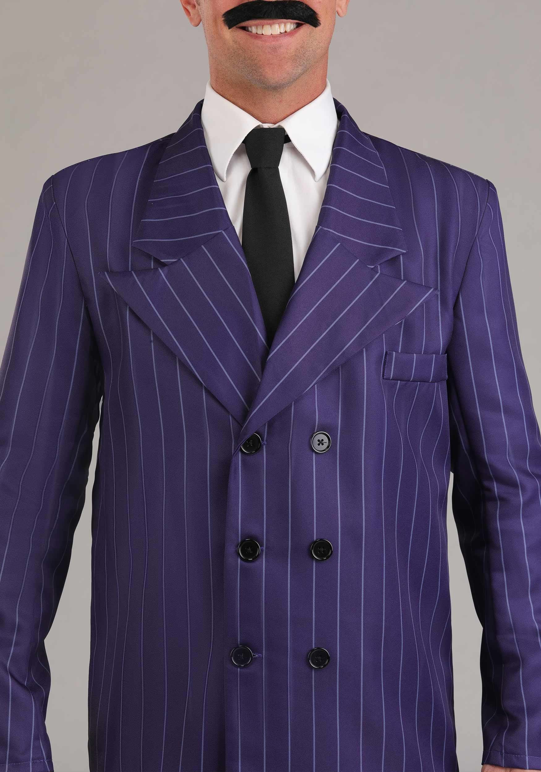 This four-piece costume set includes a purple pinstripe jacket and matching pants, both modeled after Gomez’s iconic 1960s TV wardrobe. The jacket features a double-breasted front for a touch of old-school luxury, and the pants are cut in a classic straight leg to keep things looking sharp—even when you’re galloping through the drawing room or summoning Cousin Itt.