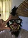 - Molded sunglasses on face w/ large tusks at mouth