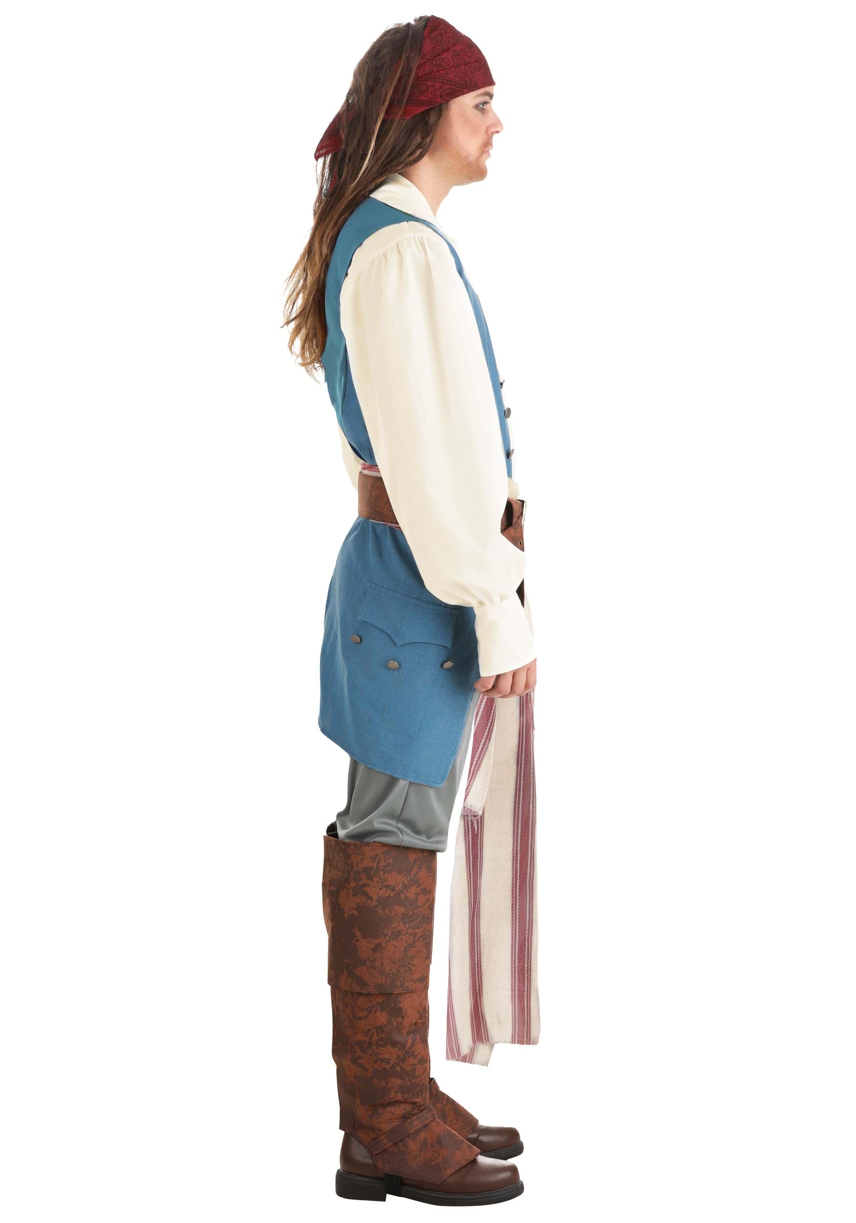 This adult costume is officially licensed from Disney's Pirates of the Caribbean series. It takes inspiration from his main outfit and comes with many pieces to help you look the part! The costume outfit starts with a white shirt and a vest. It also comes with a pair of brown pants and a pair of boot covers that fit over your own shoes. The belts and sashes included help give you a bit of swashbuckler style. The finishing piece comes in the form of a red headscarf, which can be tied around your head to provide you with that classic Captain Jack Sparrow appearance! When you have the whole ensemble on, even a nasty Kraken will have a tough time trying to catch you.