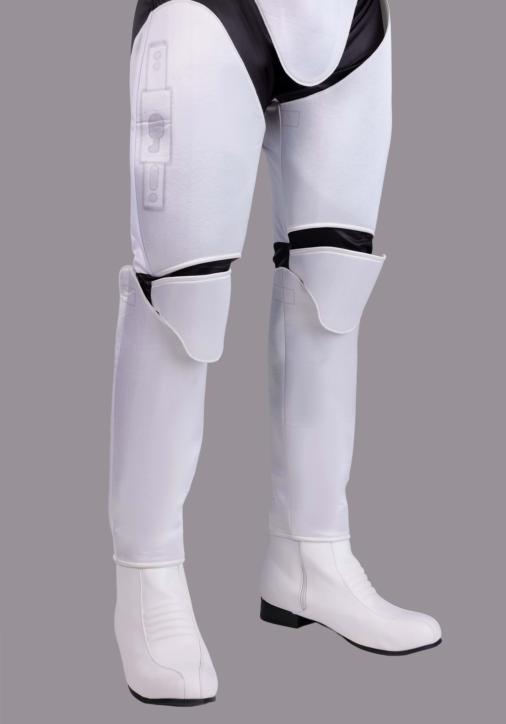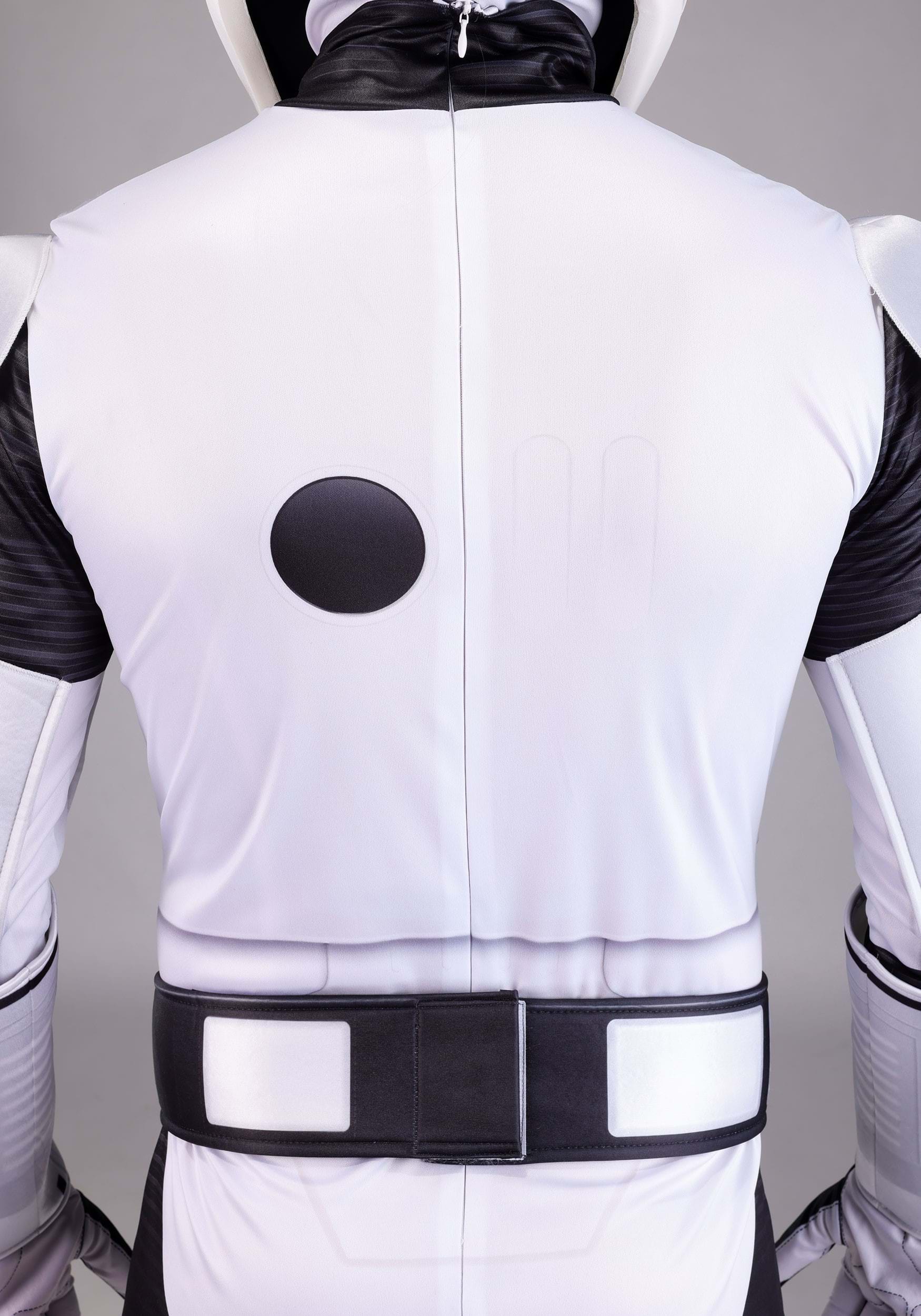 This sleek jumpsuit is made from a shiny jersey fabric with sublimated details to replicate the Stormtrooper look. It zips up the back for a secure fit (because nothing ruins the whole "fearsome enforcer" vibe like your armor shifting mid-mission). Matching gloves and a hood with elastic at the wrists and back of the head ensure a seamless, polished look.