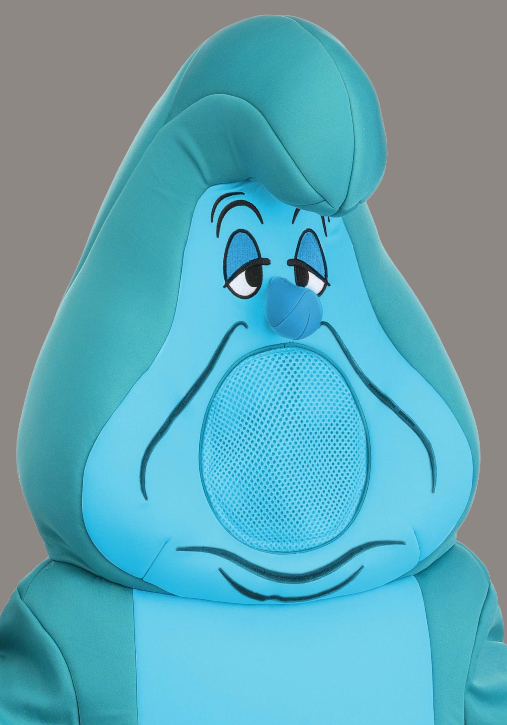 - Foam backed, jersey knit tunic has zipper down center back, has embroidered facial features, fiber filled nose, removeable mesh face piece secures with hook and loop fastener