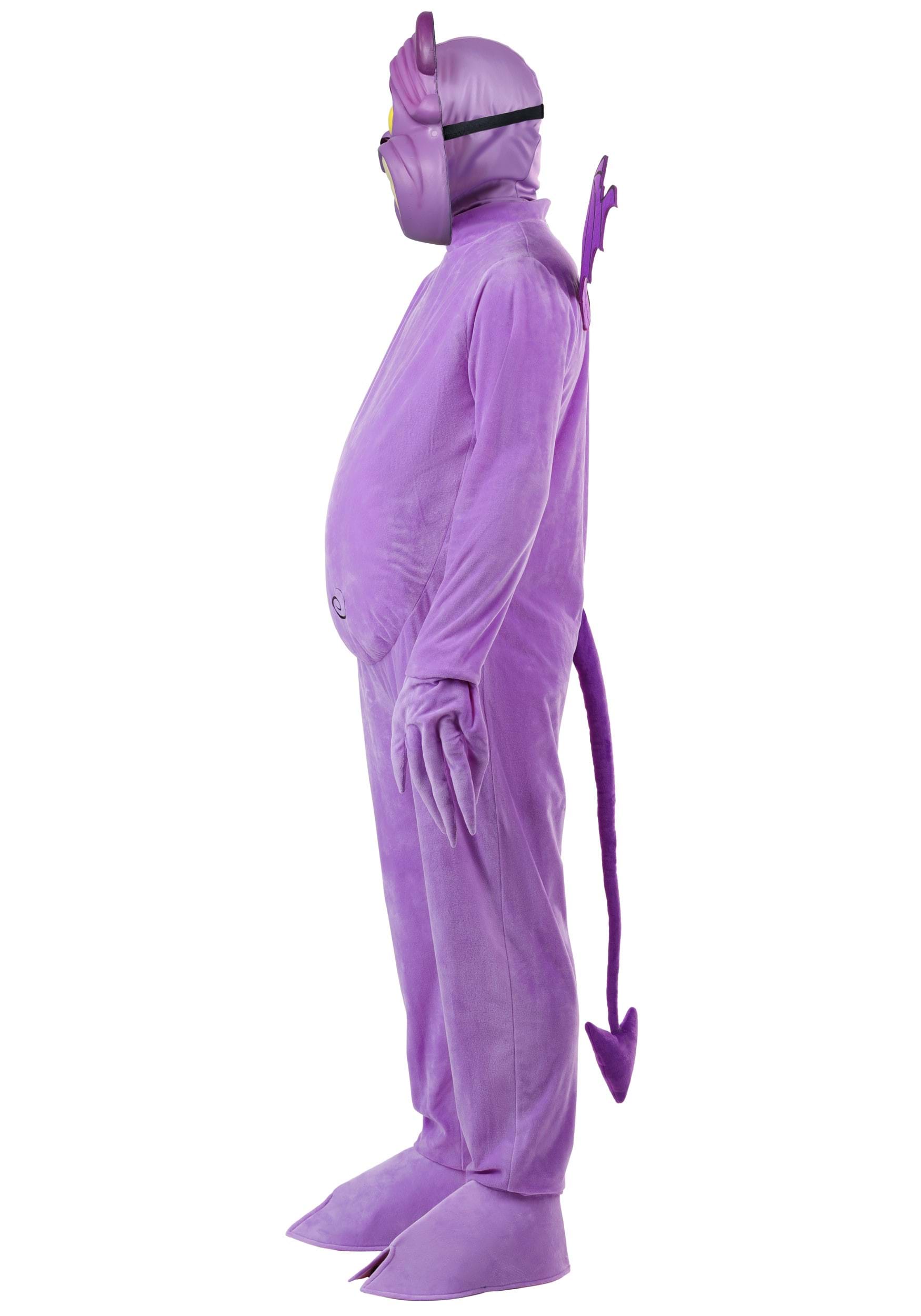 Bring the chaotic world of Disney's Hercules to your party with this Pain costume! Featuring a full-body jumpsuit, made from cozy polyester velour, this outfit captures Pain's quirky shape with an exaggerated belly, pointed tail, and winged back. The hood and molded mask recreates his animated expression, while the exaggerated gloves and foot covers make for a snug, animated fit.