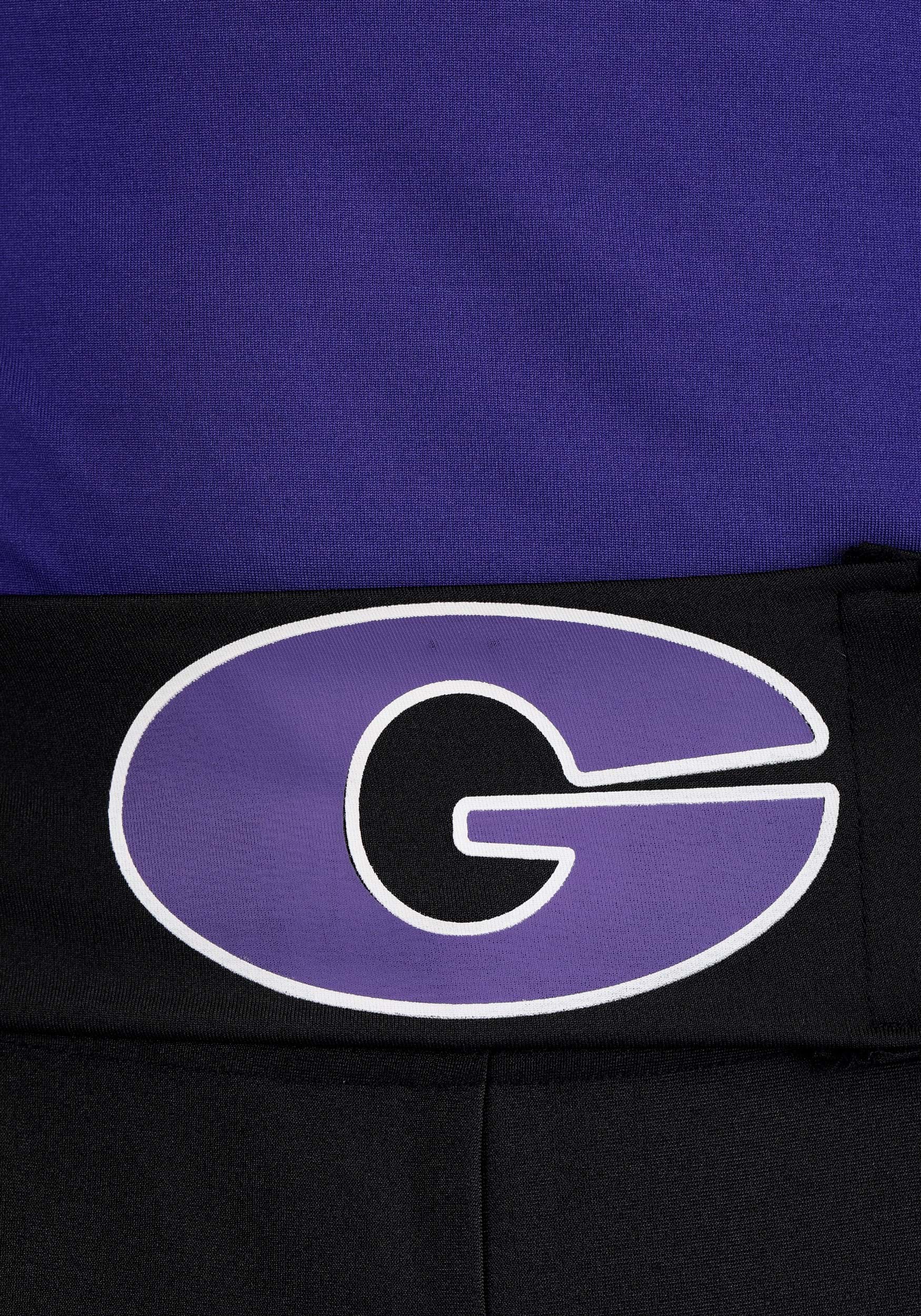 The straps secure with hook and loop closures for easy changing. The finishing detail is provided by purple socks that match the uniform. You'll be ready to take on any dodgeball team when you put on this costume, but beware—the good guys usually win!