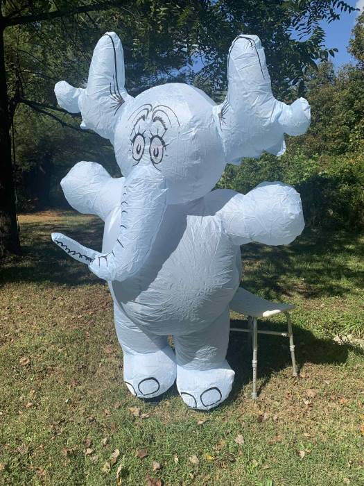 - Nylon fabric inflatable Horton costume has zipper down center back