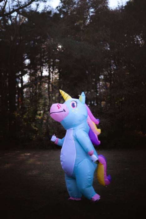 It's been said that a blue unicorn will appear whenever there's about to be an especially epic Halloween party. Apparently the rumors were true, but it turns out that the unicorn is also happy to lend its presence to school events, parades, birthday celebrations, and much more. Honestly, it can't resist a good time. You should see it on the dance floor, requesting the DJ to play an upbeat song about unicorns.