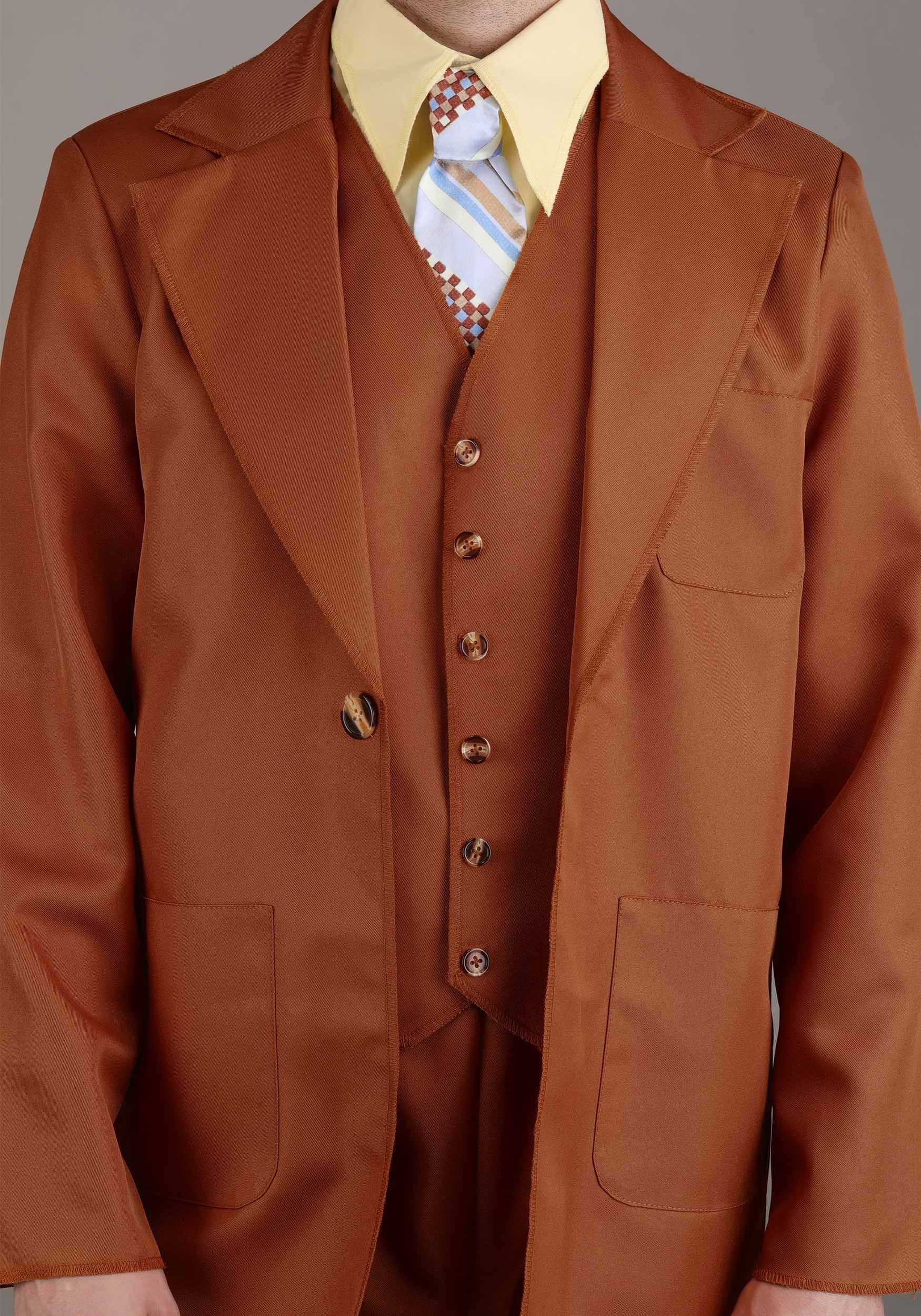 The light brown twill jacket comes loaded with faux turtleshell buttons and ornamental pockets (you know, for all your ligers sketches). It even features attached matching vest panels so you look extra formal without the hassle of real layering. The pleated pants have an elastic waist, because comfort beats conformity every time.