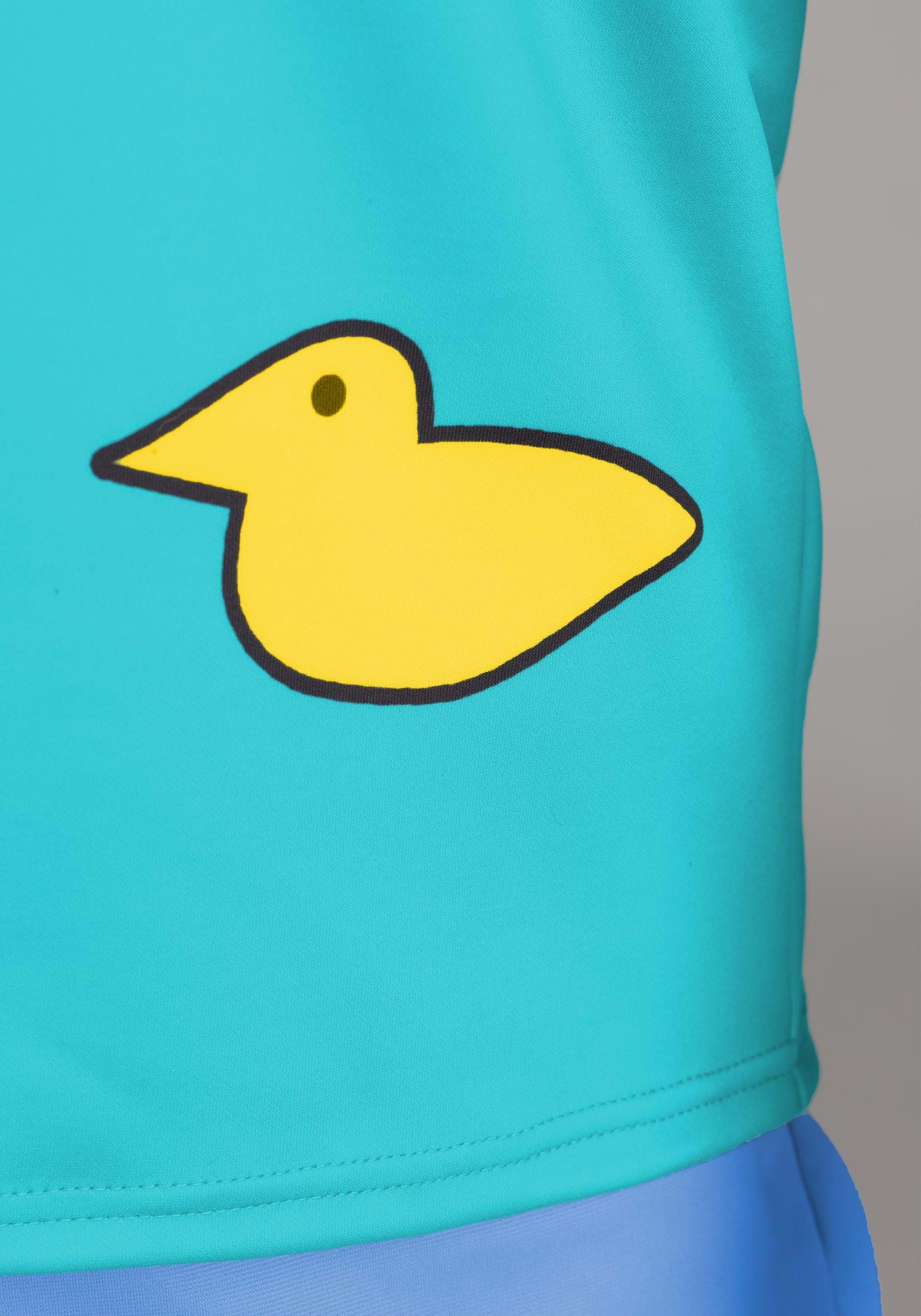 The costume includes a printed shirt with Phil’s unmistakable style: a pink-striped short-sleeve tee with an attached turquoise tank top over it. The tank top layer is made of soft knit fabric and features printed details like a cartoon duck and a faux pocket, just like the show.