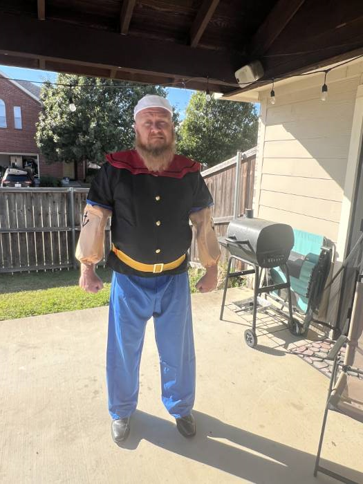 You'll be flexin' in all the photos this Halloween when you have these bulging biceps on your arms! You can become one of the most famous comic strip characters of all time with this Popeye costume! When you're not flexin’ those muscles you can pound can after can of spinach. It's going to be a long night after all, and whether you're out with Olive Oyl or looking for a new girl, it's going to be a great time! This costume comes with all of the details you need to kick your muscle gains into high gear. The officially licensed costume starts with the blue polyester pants that have an elastic waistband for a comfortable fit all night long (and, of course, it helps when you find yourself in compromising positions during an alley brawl with Bluto). The polyester black short sleeve top has gold buttons and a red collar, just like the classic character. But the crowing glories of the shirt are the attached padded arm muscles with anchor tattoos that are sure to intimidate anyone you meet. A yellow cloth belt with gold buckle accents the costume and the included sailor hat finishes off the look.