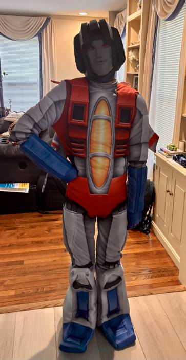 We put our best costume designers on the job and they created this perfect product. It comes with a full bodysuit as well as a handful of accessories. The bodysuit is covered in an all-over print that brings the mechanical menace, Starscream, out of the animated series and into the real world.