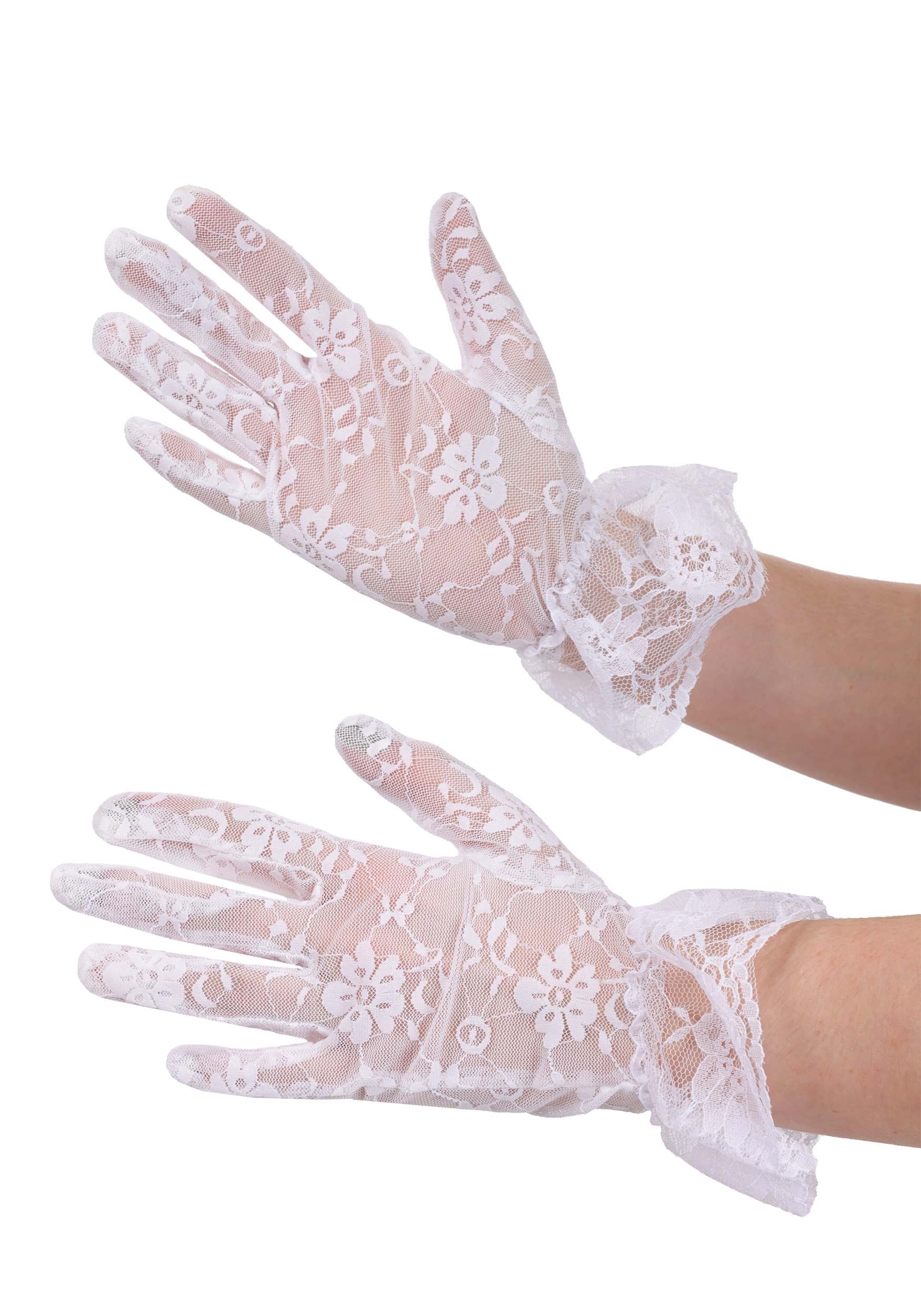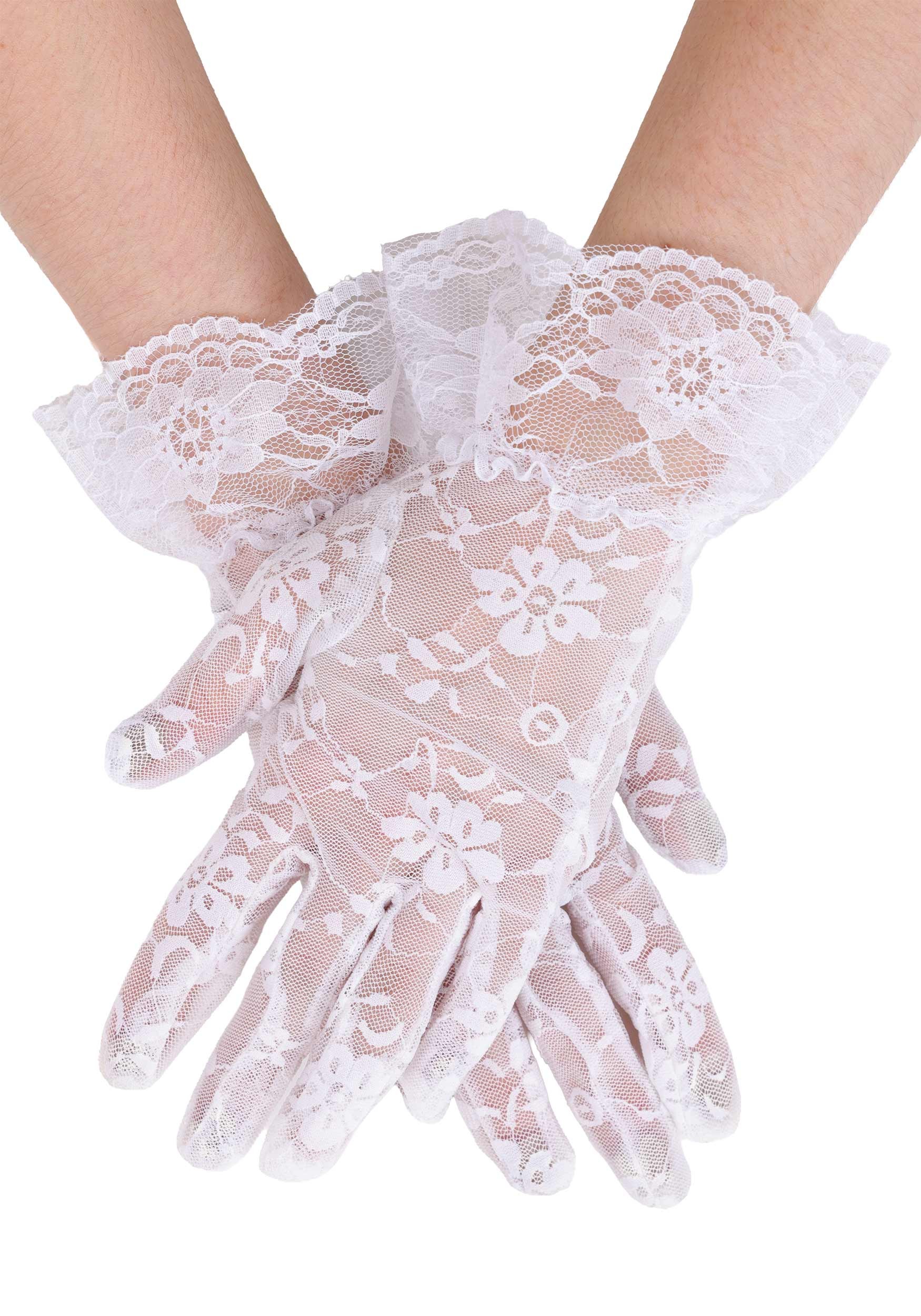 This is an exclusive Women's Victorian White Lace Costume Gloves.