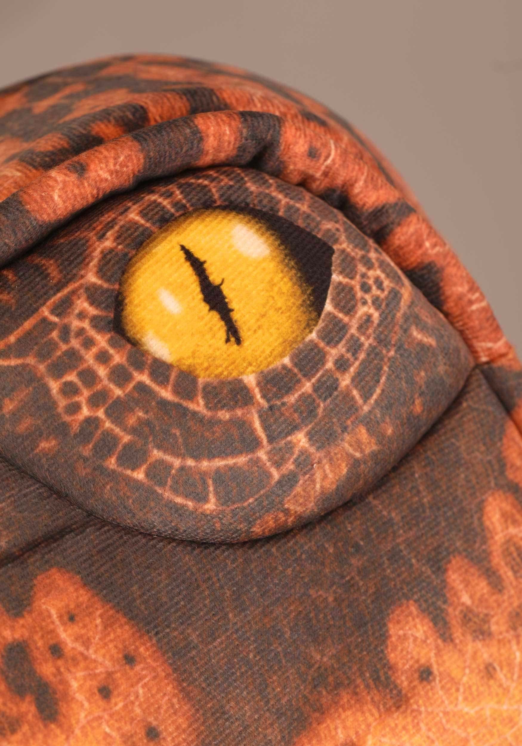 - Top of headpiece has printed & soft-sculpted velociraptor face