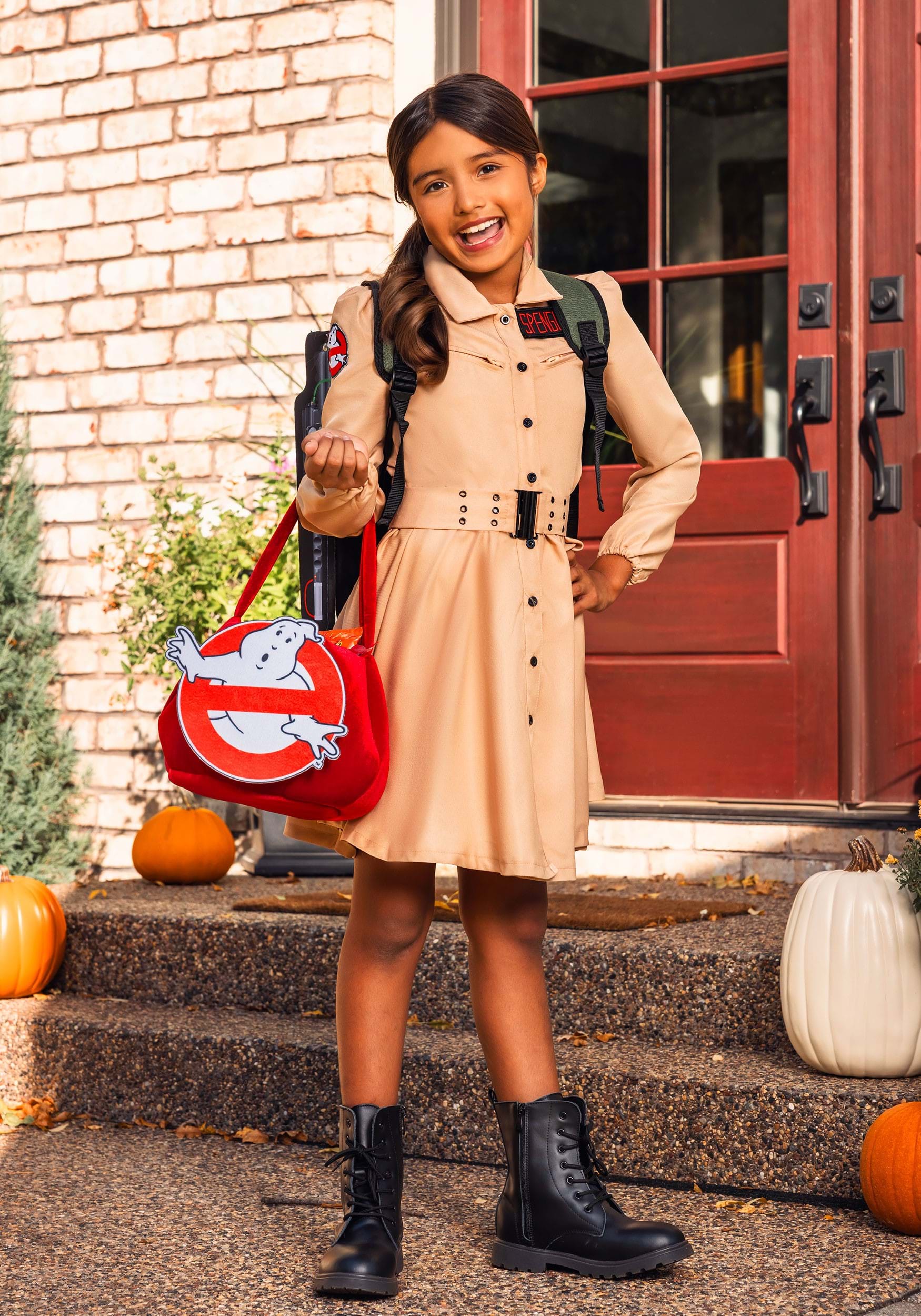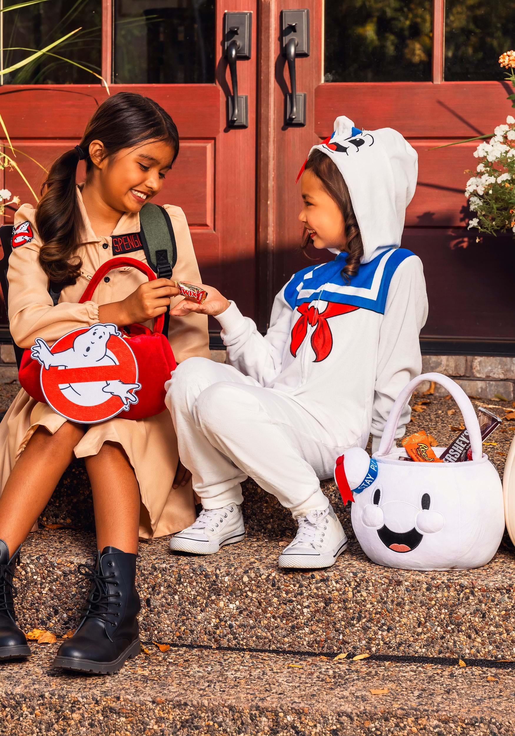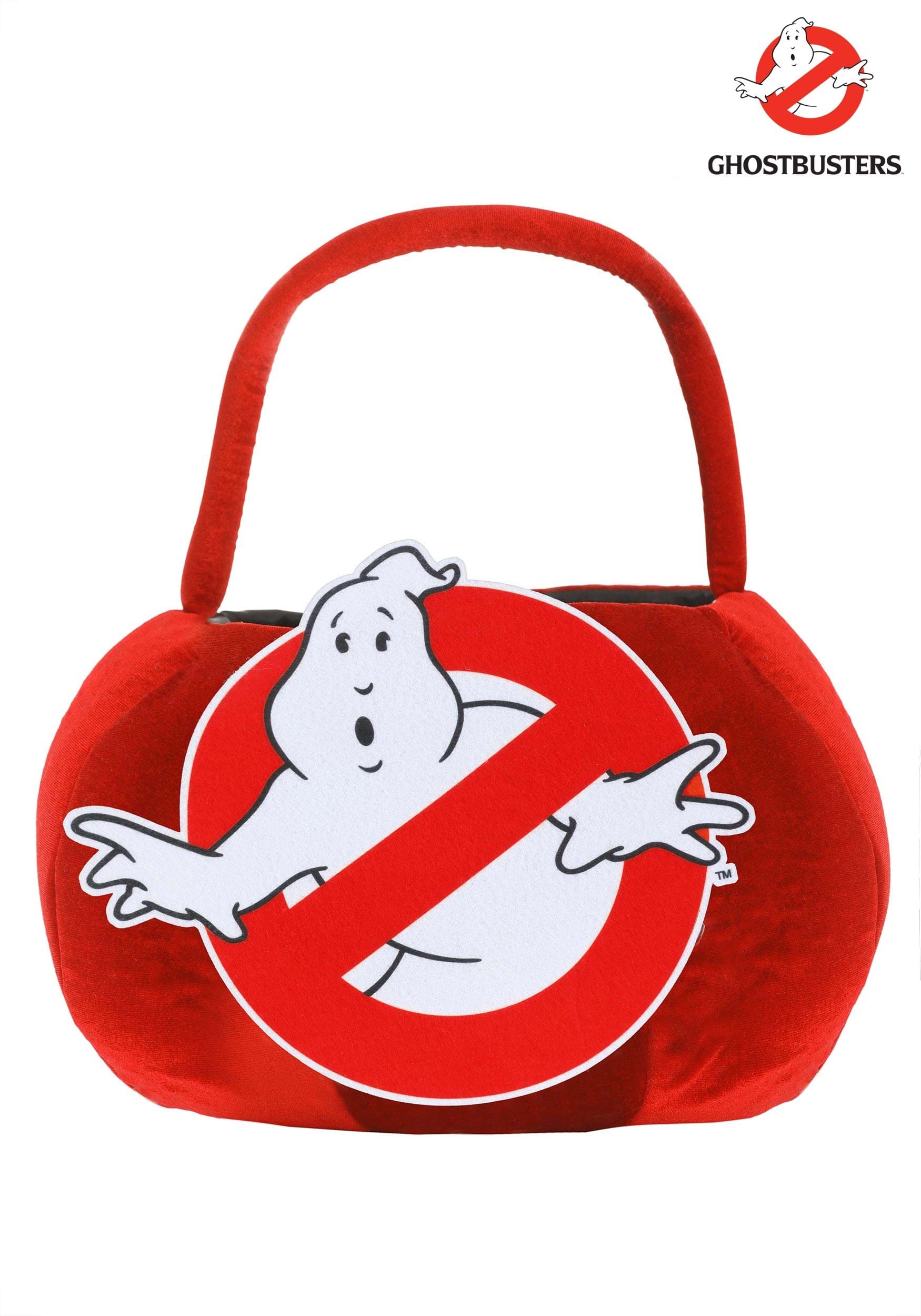 This treat bag has been designed to perfectly contain all of the deliciousness of the treats you plan to collect this Halloween. The pumpkin-shaped bag is red velvet and designed with a matching handle. On the front of it, the Ghostbusters logo is featured!