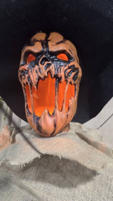 This giant-sized scarecrow is designed for both indoor and covered outdoor use, making it perfect for haunted house setups, front-yard frights, or a centerpiece in your graveyard scene. Its sound effects, glowing lights, and eerie movement make it a must-have for anyone who wants to turn their Halloween into a full-on horror experience.