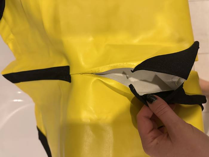 • Jacket has zipper down the front, flap with snap closures at jacket bottom and neck