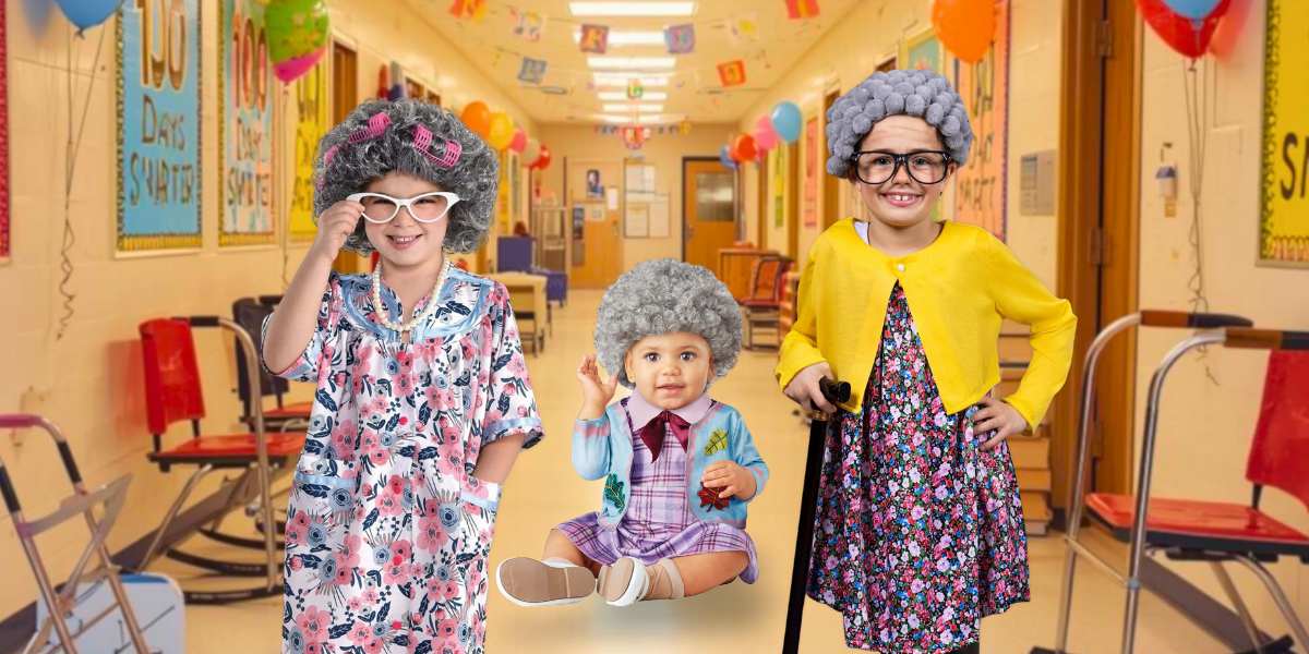 If you're piecing it together, accessories make the outfit: canes, suspenders, prop anti-drop reading glasses, vintage frames, pearls, brooches, shawls, wristwatch chains, and grey wigs. For shirts, iron-on or stick 100 pom-poms, googly eyes, or stickers to a plain tee ("100 Days Brighter," "100 Days Smarter"). Add number balloons, bead necklaces, or a 100-punch card lanyard for hallway flair without fuss.