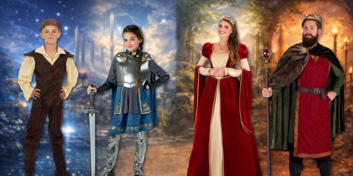 Pages (or Knaves) feel youthful and adventurous, often featuring lighter builds and flexible materials. Knights are action-driven, with armor-inspired details that still allow for movement. Queens balance elegance and control with flowing fabrics and structured accents, while Kings command attention with bold silhouettes and regal finishes. Together, they create a visually cohesive set that works perfectly for themed events or coordinated group looks.