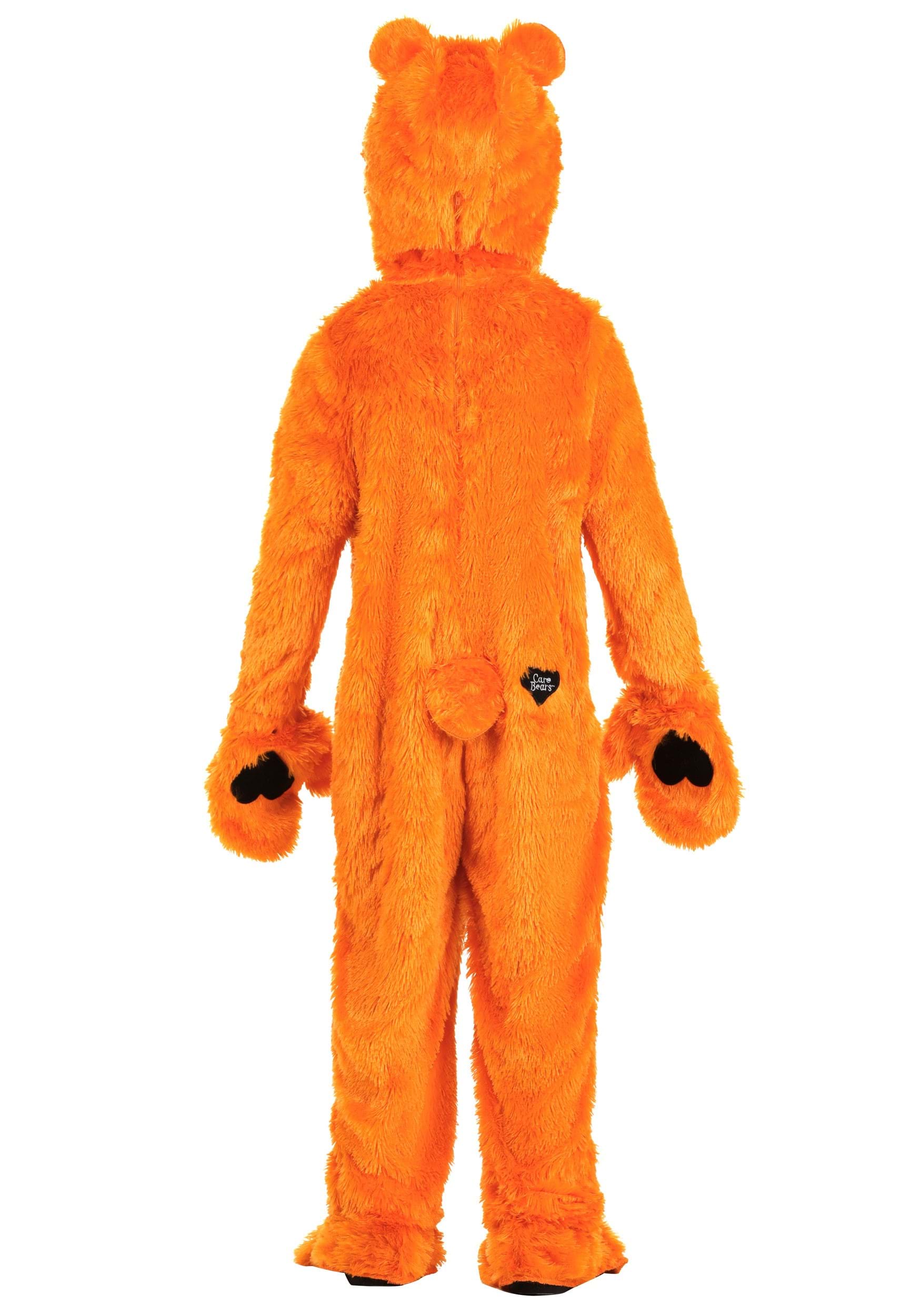 The costume is a cozy orange jumpsuit, covered in bright faux fur and featuring a back zipper for easy in and out. The tummy features an appliqued jack-o'-lantern symbol, and the Care Bears logo on the backside gives it that extra "Yep, it's official" touch.