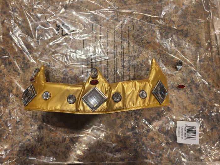 The jewels attached to the crown started falling off while costume was still in packaging, and never stopped. The Lion piece had cheap and faulty velcro, and the nose and eyes were sewed on crooked. Horrible costume experience…never again. Would not recommend for a child or adult. Disappointed!Bottom Line No, I would not recommend this to a friend.Was this review helpful to you? - Five StarsBy Anonymous | January 11, 2022