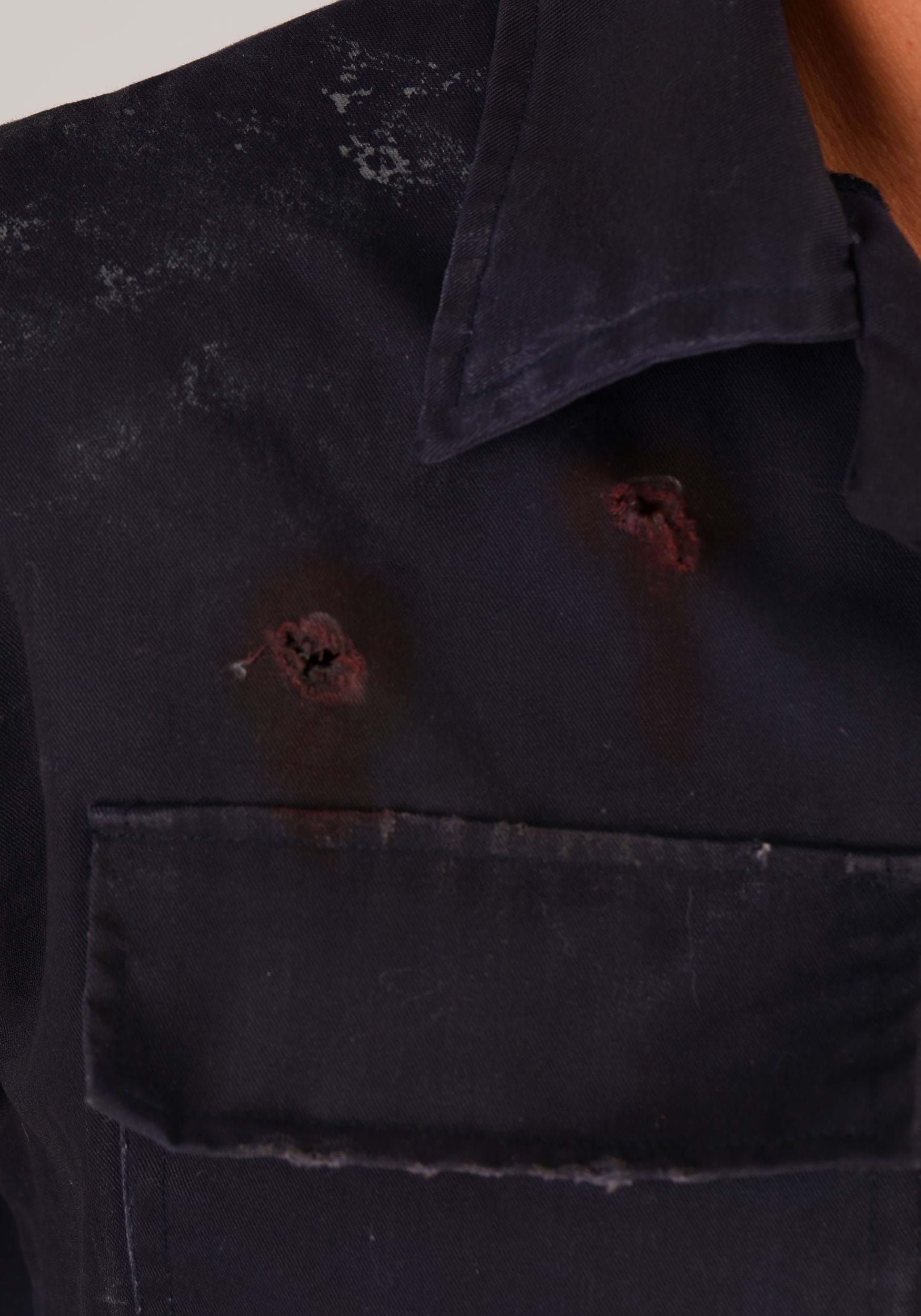 What's that? Why do these Deluxe Blue Mechanic Coveralls have frayed edges and red stains? Well, fixing up cars is tough work... and that could be any kind of mystery fluid from an automobile. It's definitely not blood...
