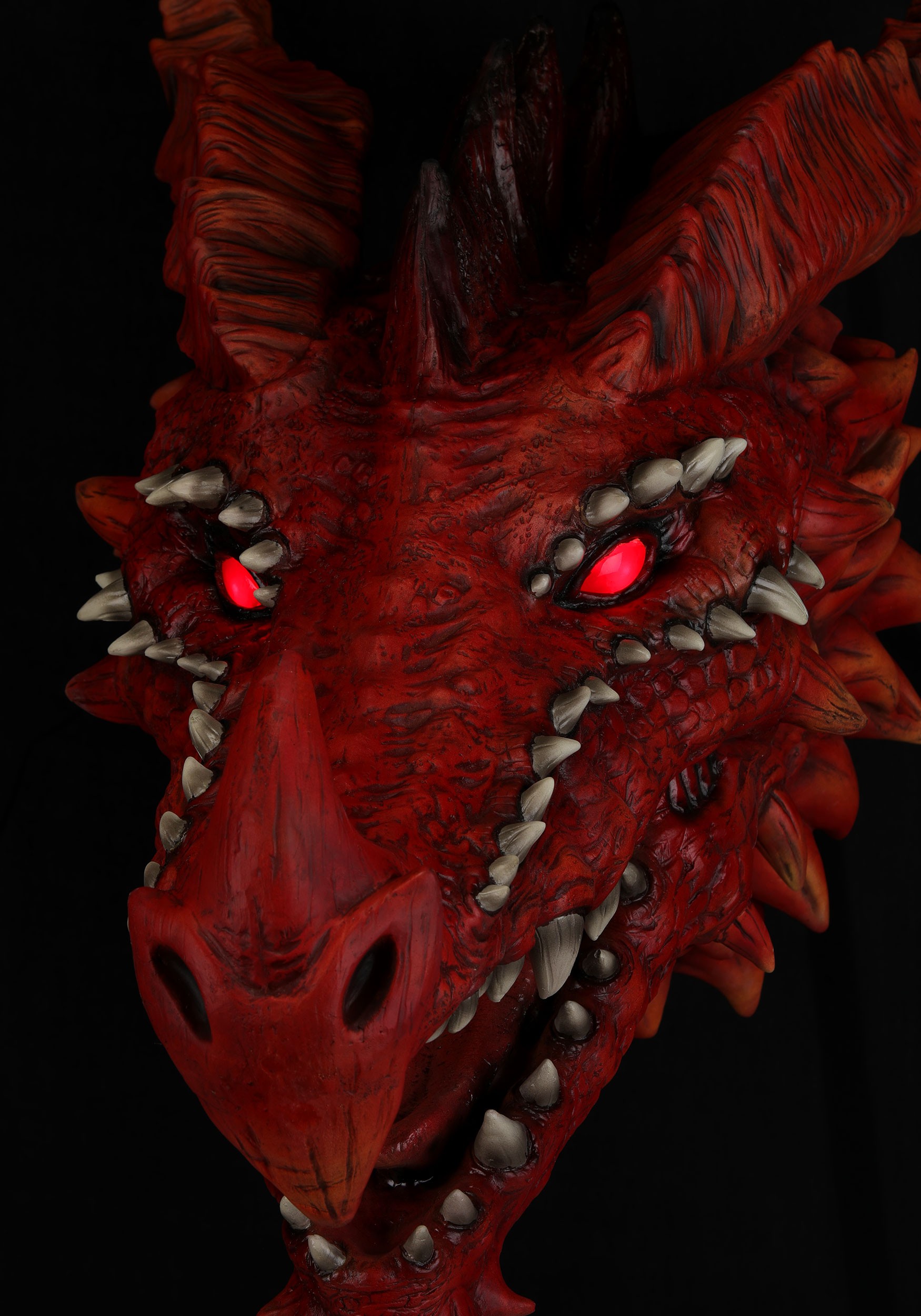 The dragon's head is molded from foam and richly painted for a look so grand, you'll be expecting it to demand a tribute of gold. Its light-up eyes glare menacingly, and its roaring sound effects will have guests questioning their life choices. Want to take it up a notch? It's fog machine compatible, so you can create a fiery breath effect that's 100% safe (and just a bit more awe-inspiring).
