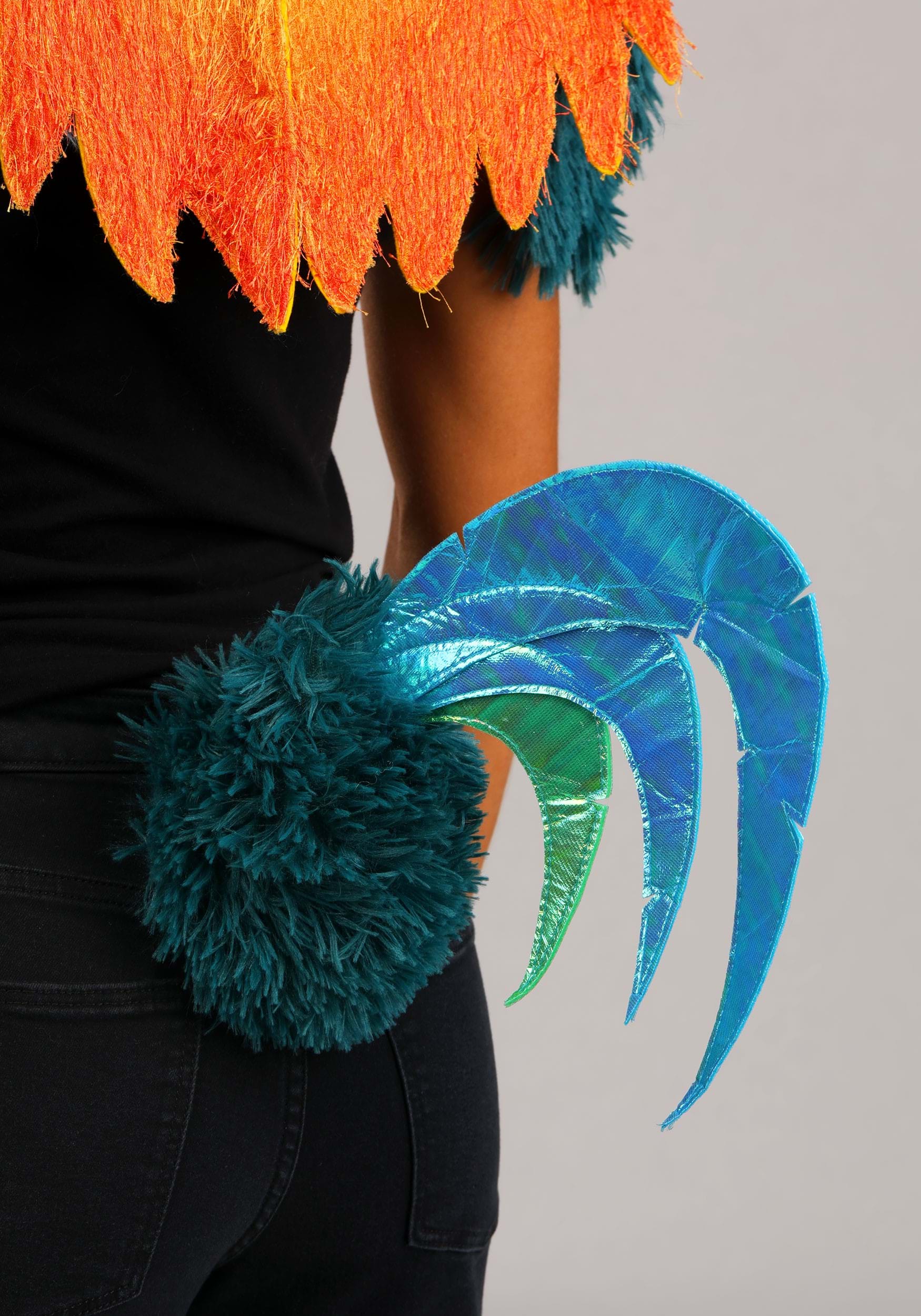 Bring Moana's quirky sidekick along for the fun with this costume kit! The four-piece set has a headband, collar with shoulder caps, tail, and shoe covers. Shaggy faux fur creates a feathery look for the headband, collar, and tail base, while shimmering lamé and glossy vinyl make the tail feathers, comb, and beak stand out. Large googly eyes ensure your impression is hilariously spot-on, and hook-and-loop fasteners keep everything in place.