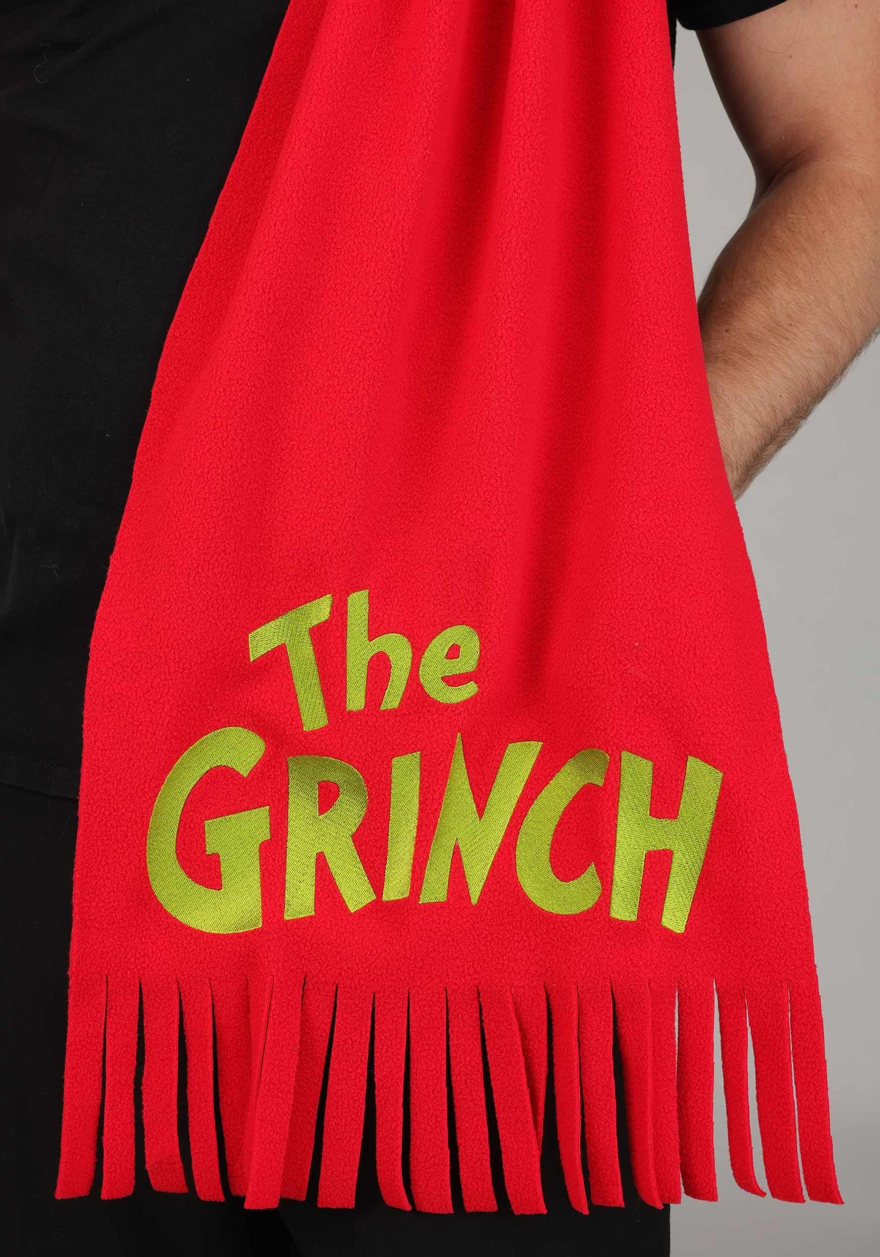 Crafted from soft, high-quality fleece, this scarf keeps you snug through every snowy outing or holiday party. One end features "The Grinch" logo embroidered in bold green lettering—instantly recognizable to any Dr. Seuss fan—while the other showcases a plush Max the Dog head made from a soft minky fabric. His stitched features and single antler capture all his on-screen charm.