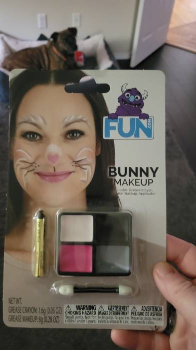 Look sweet as can be in this exclusive Bunny Makeup Kit! The plastic palette comes stocked with nontoxic grease makeup in white, black, pink and gray so that you can create your own unique bunny look. The foam-ended applicator makes application easy, and the included grease pencil can be used to fill in the finer details. When finished looking like a garden critter, remove the makeup by following the instructions on the back of the package.