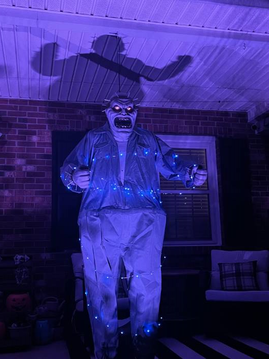 A cord on top makes it easy to hang this guy wherever you need maximum intimidation: haunted house? Sure. Entryway? Absolutely. Bathroom? Your call. Powered by 3 AAA batteries (not included), he’s easy to set up and terrifying to walk past in the dark.