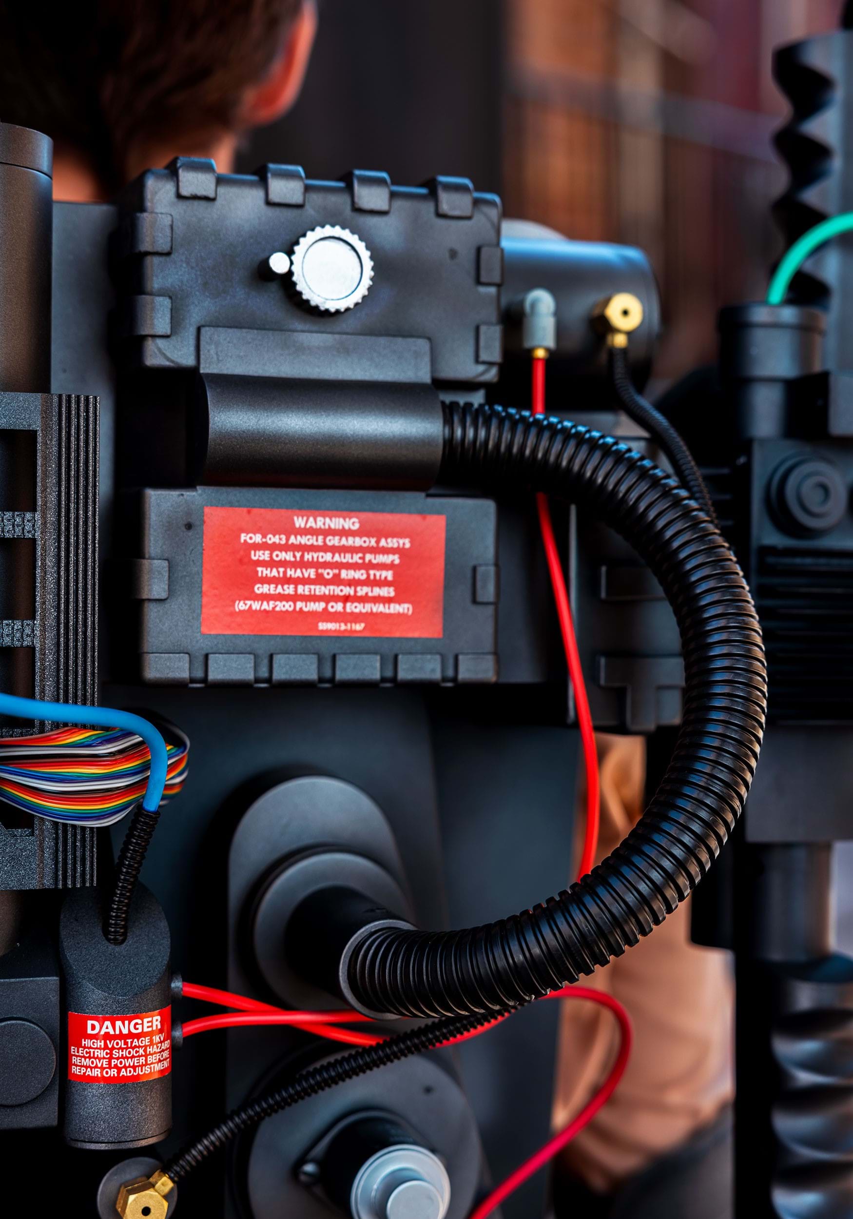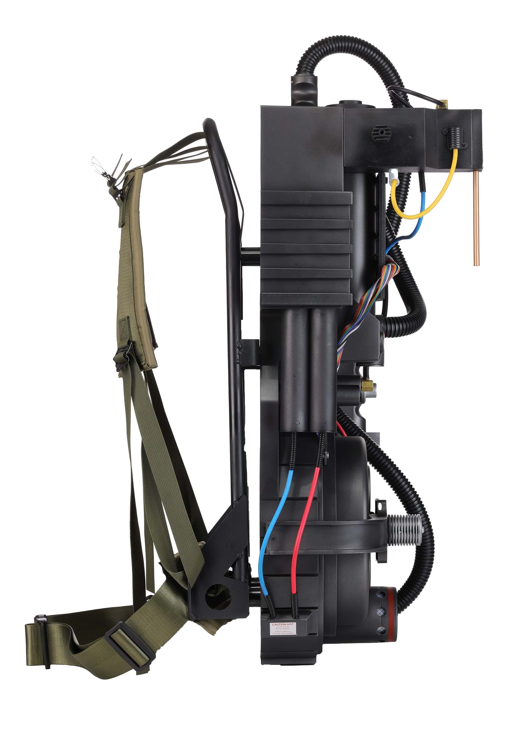 A push-button on the wand grip activates movie-style lights and sounds—yes, the hum is back, and it’s glorious. Just lflip the switches, and pull the trigger and the wand vibrates like it's ready to take down Slimer. Once it's powered on, it's like stepping into a scene with Venkman and the gang. Complete with a red light-up feature at the end and further lighting effects on the pack. Of course, Slime sold separately.