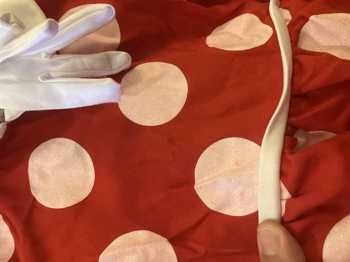 This costume is cute and it was nice it came with tights and attached black sleeves, but the fabric is red with PINK polka dots, not white, and the polka dots are kind of rubbery and stick to each other. The picture is misleading.Bottom Line No, I would not recommend this to a friend.Was this review helpful to you? - Five StarsBy almaden | October 31, 2022