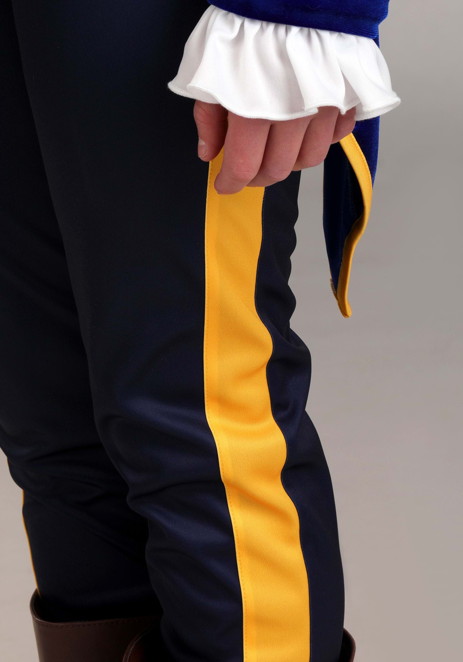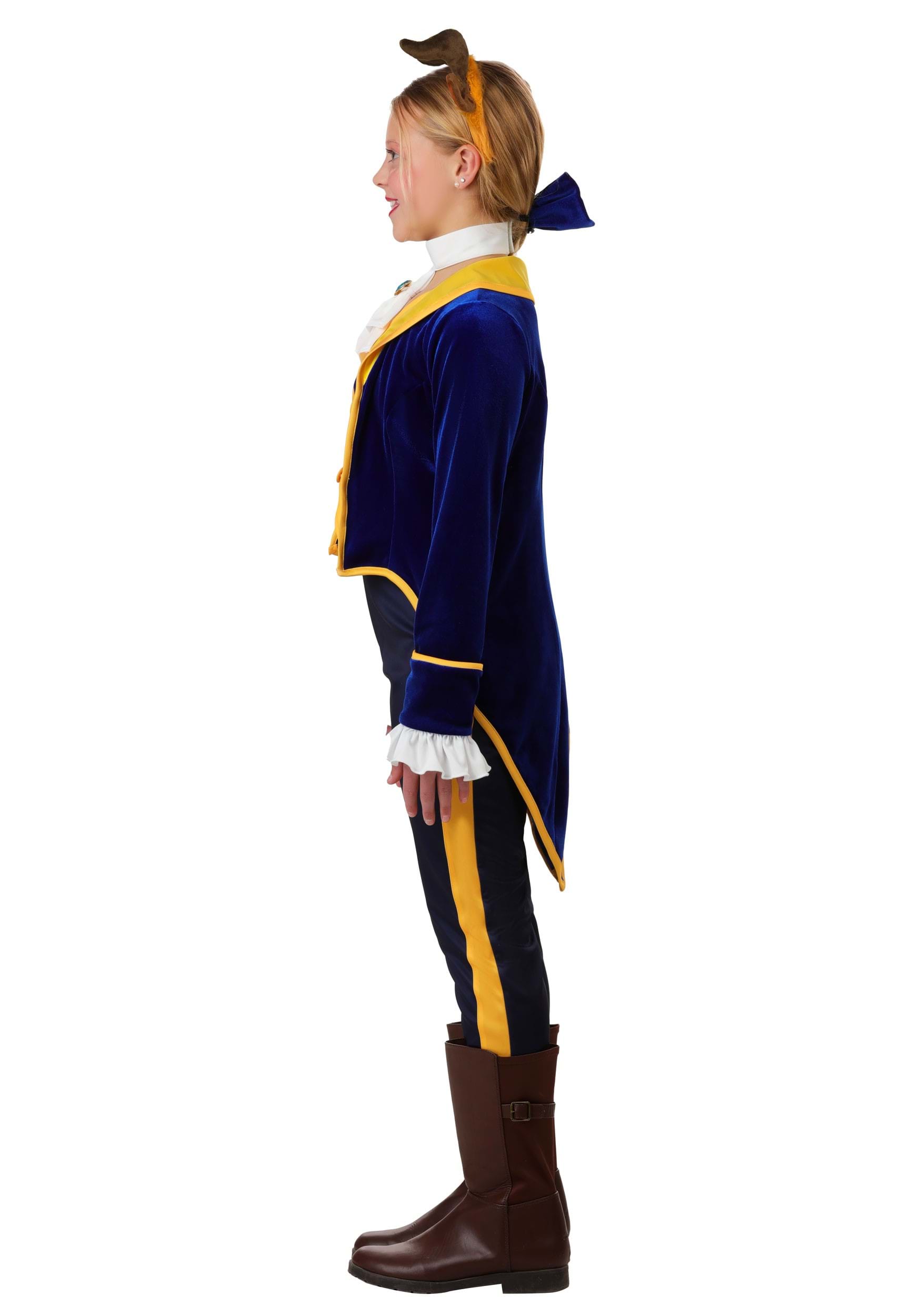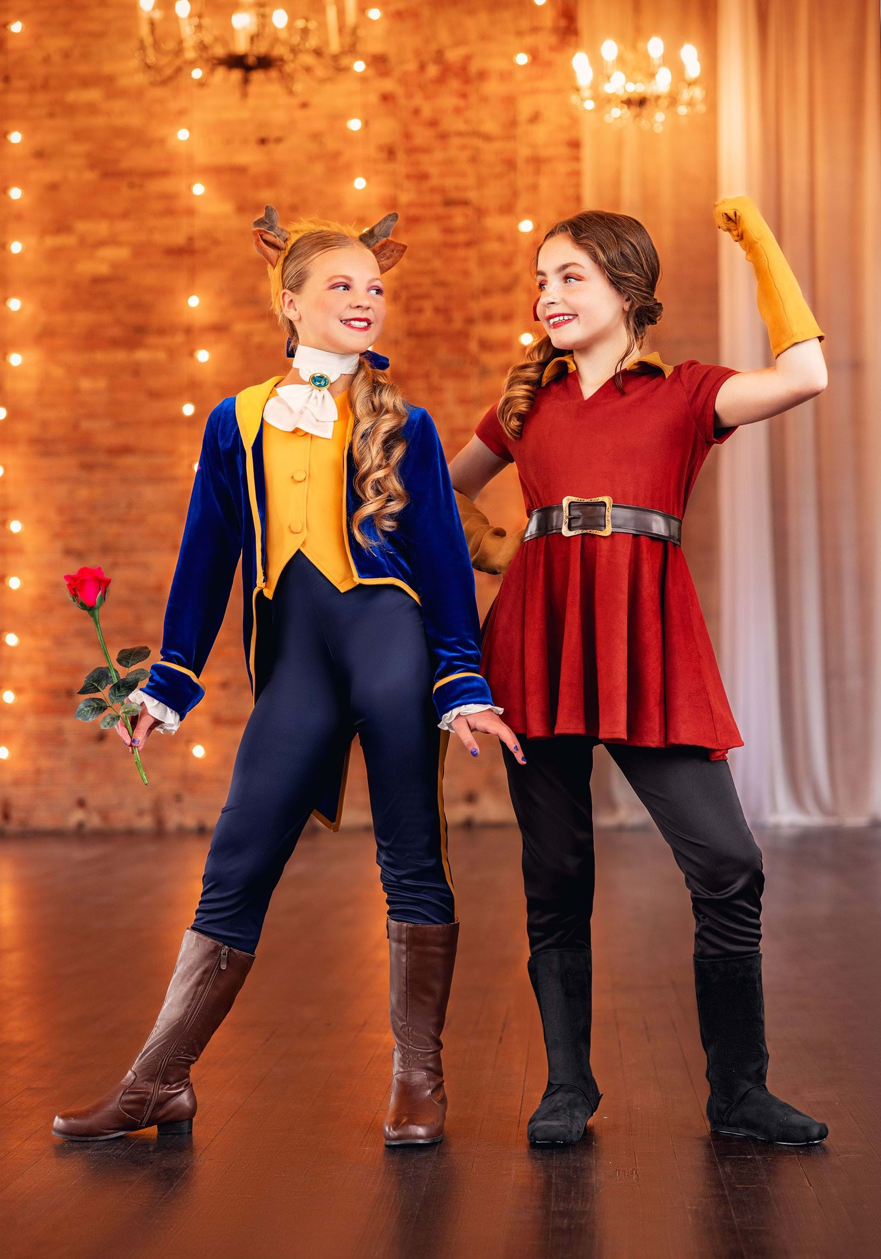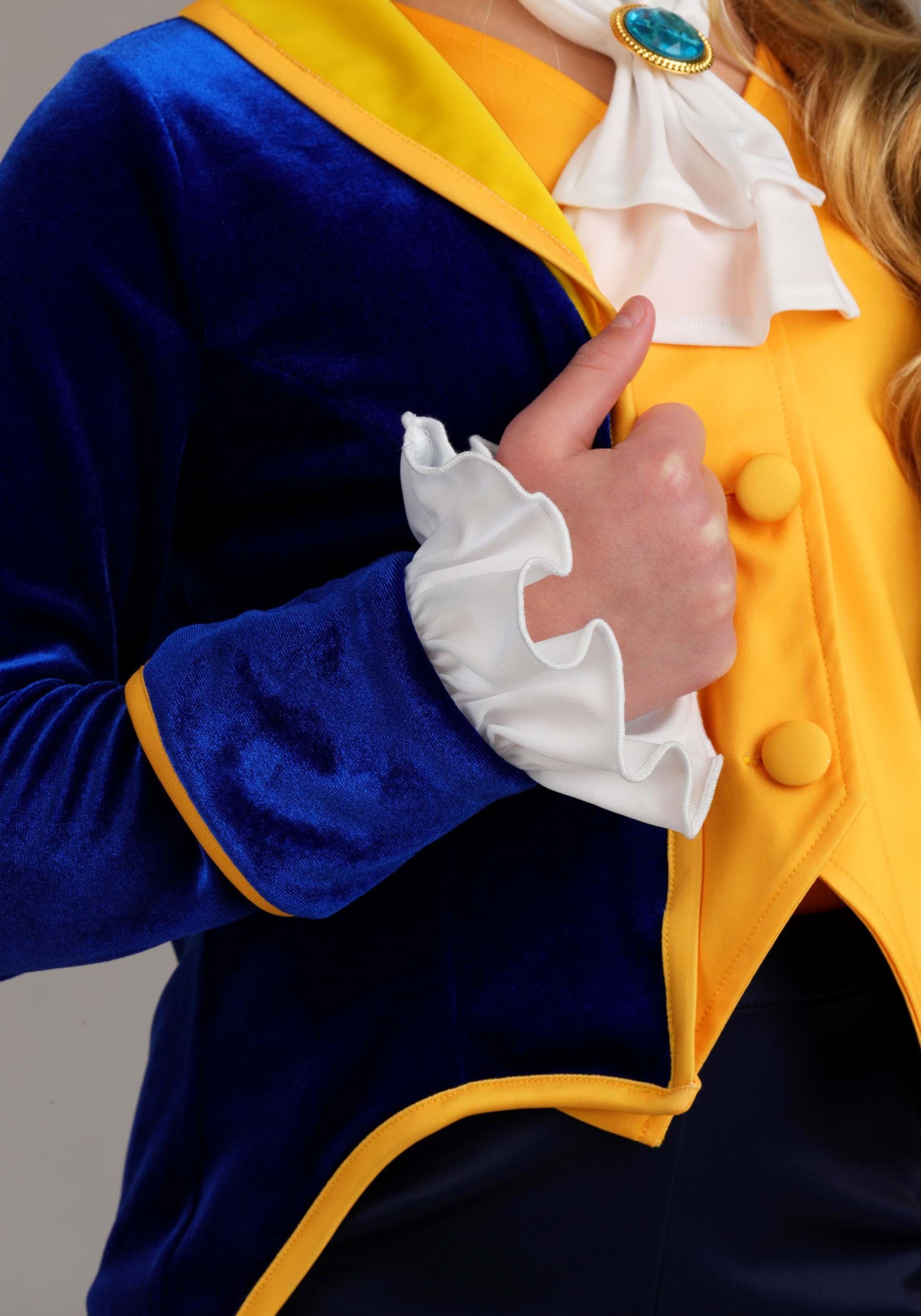Dressing like the Beast starts with tapered, elastic waistband pants. A vest with front buttons and a hook-and-loop fastened jabot featuring a faux gem brooch layer on next. Then, a cropped velvet jacket with long tails and golden yellow accents completes the formal look. Perfect the costumes polished look with the included horns and ears headband and blue velvet hairbow.