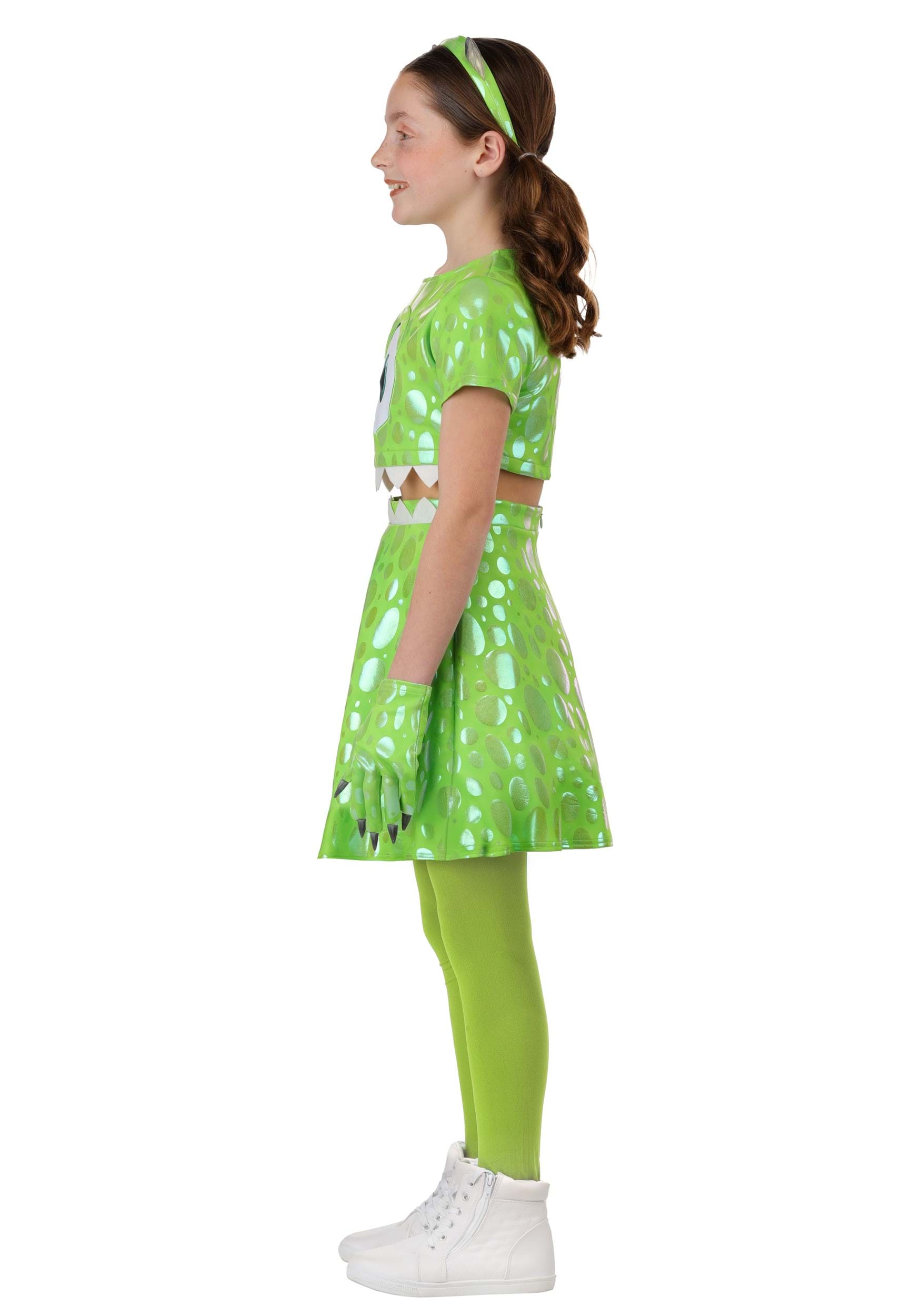 The cropped top is made from stretchy scuba knit with a jersey-soft lining and features an embroidered eye front and center—Mike's unmistakable look! Iridescent foil prints add a shimmer of monster sparkle, while tooth-like trim at the hem pairs with the matching skirt to create a fun open-mouth effect. An elastic waistband keeps the skirt comfy for all-day play. Plush satin horns top the fabric-covered headband, and the green gloves come complete with lightly padded claws. It's laugh-floor fabulous from head to hand!
