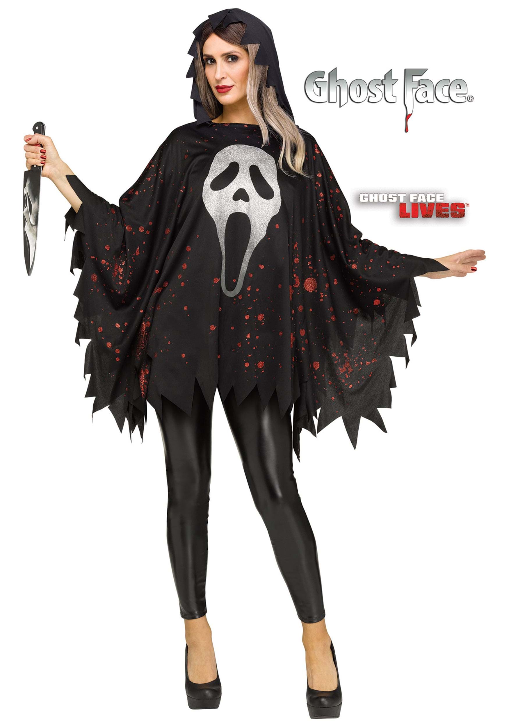 This is a Women's Glitter Ghost Face Costume Poncho.
