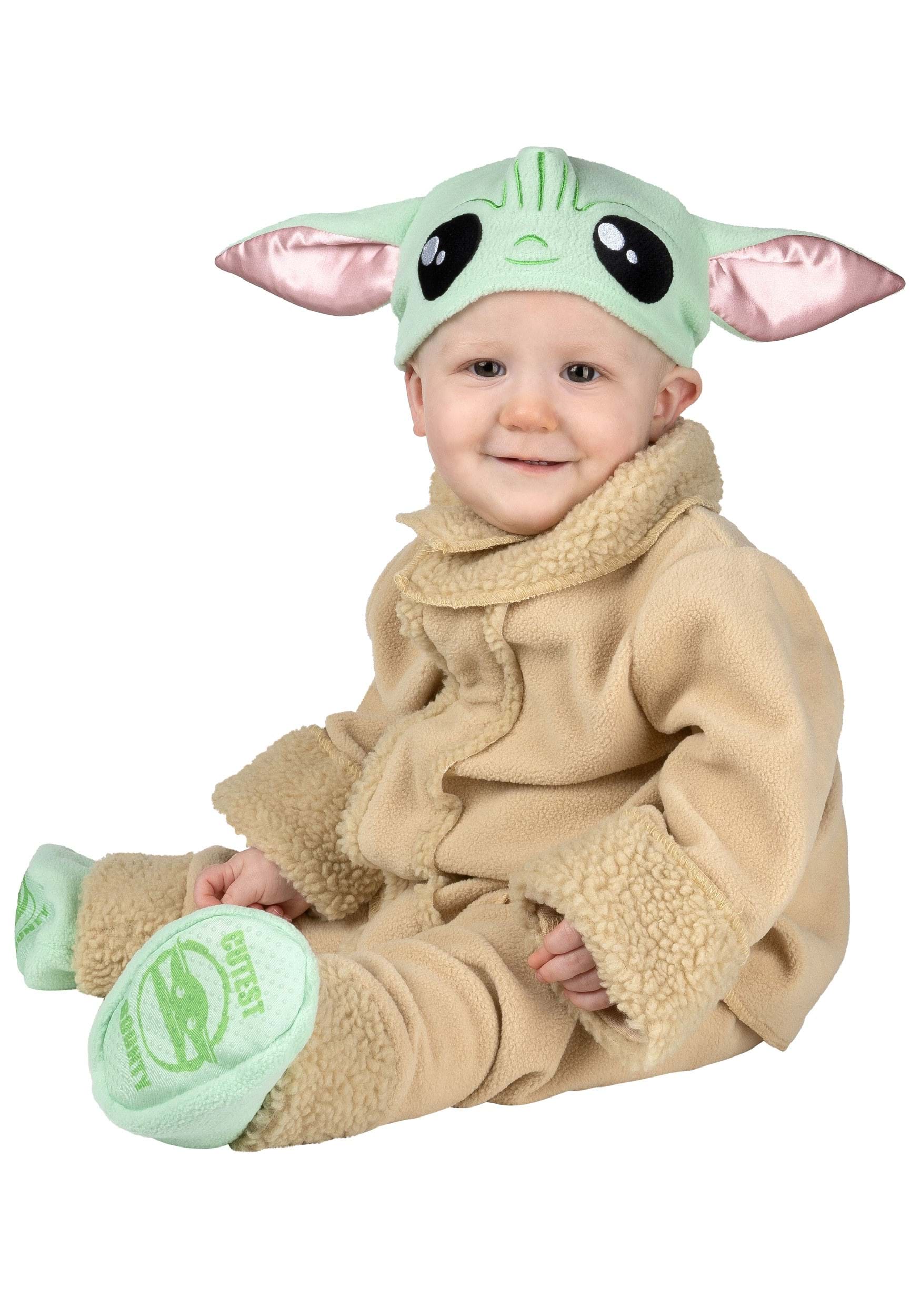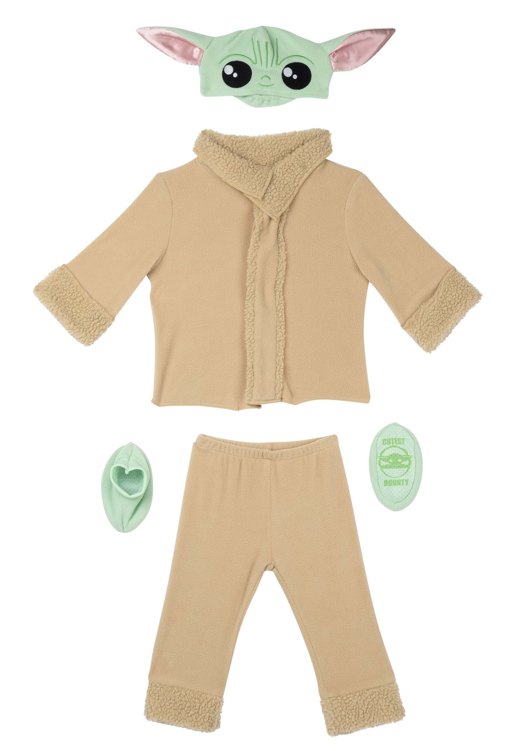 The tan jacket and pants that your child will be wearing will resemble the Younglings robe that Grogu wore. They are extra cozy and warm thanks to the sherpa collar and cuffs on the sleeves and pants legs. A cute pair of green booties are included with this costume. They are designed with anti-skid soles to help keep your little one safe.