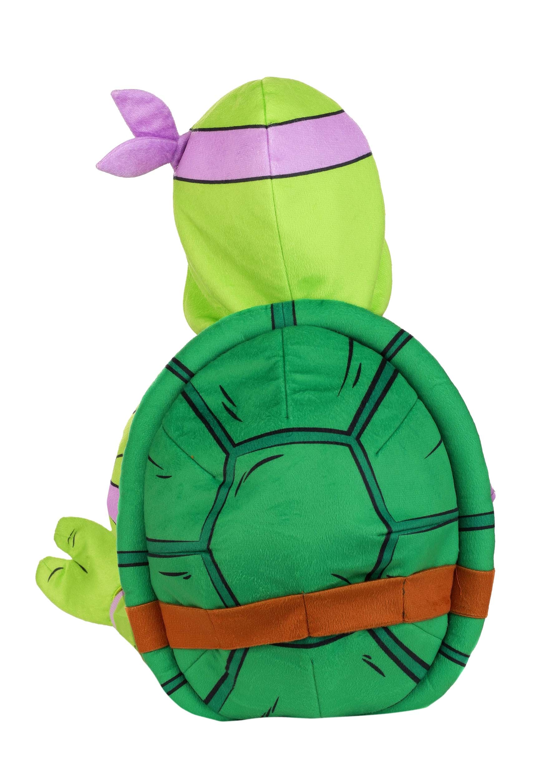 The matching hood is topped with Donatello’s printed purple mask and a tiny fabric bandana knot at the side—because every baby genius deserves their signature look. The attached soft shell on the back has printed detailing and connects with hook and loop fasteners, making it easy to remove when it’s time for snacks or diaper duty.