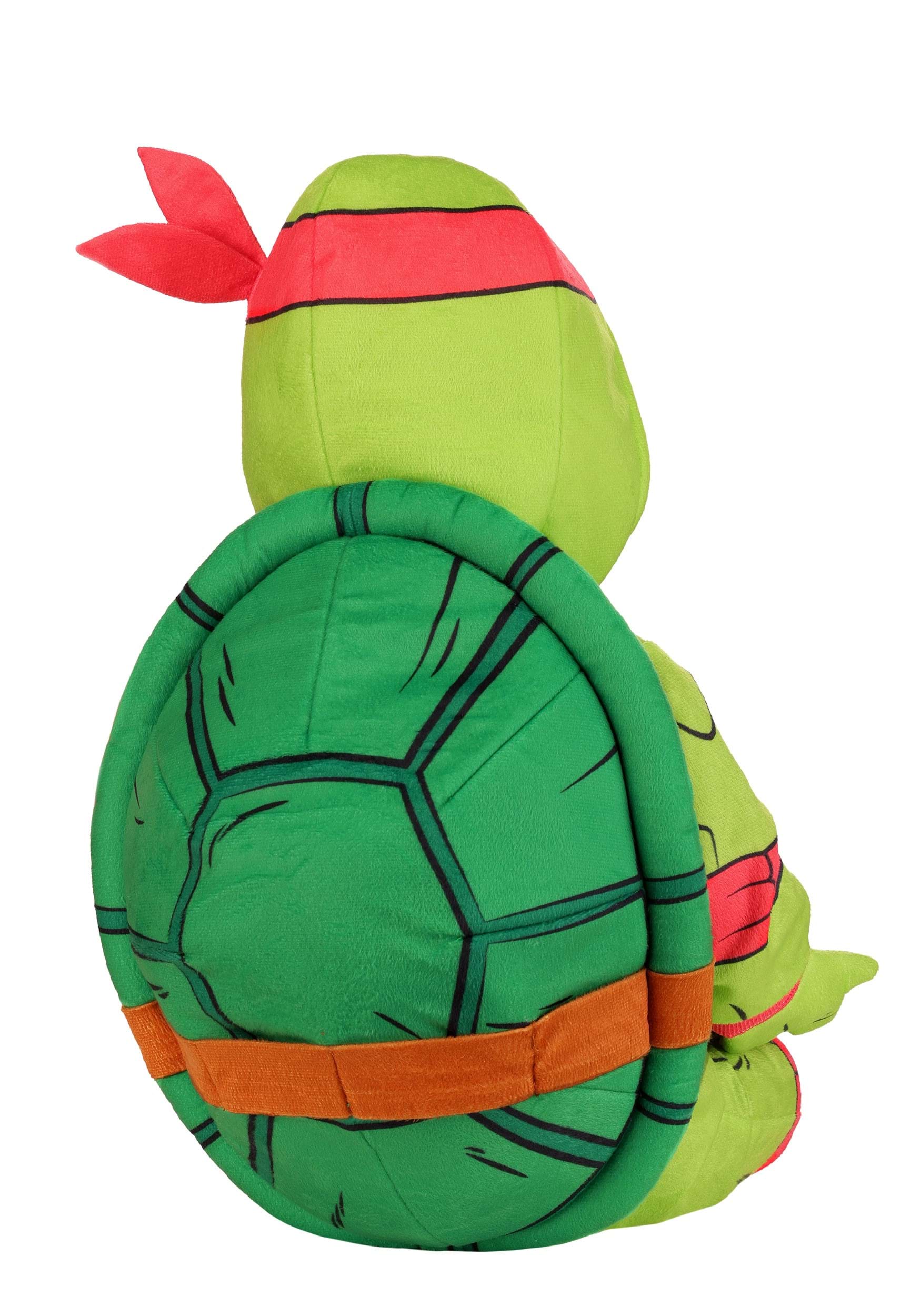 Attached mitts keep little hands warm and costume-complete, and soft green foot covers slide right over most baby shoes or socks. The hood features Raph’s red bandana and printed eyes, with side ties for that signature tough-guy flair (even if your Raphael’s biggest battle is with nap time). The dark green shell attaches to the back with hook-and-loop fasteners, so it stays in place during crawling missions and couch escapes alike.