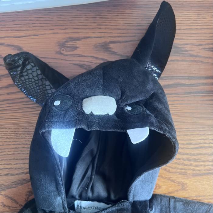 - Top of hood has soft sculpted nose and ears, embroidered eyes, appliqued felt teeth