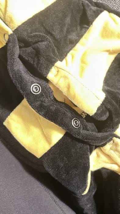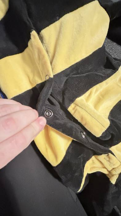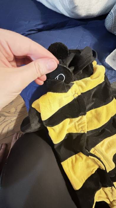 The costume I received was defective. Only came with 1 antenna and that ended coming off so easily . A lot of string were loose and coming off as well . Not properly sewed . Some buttons won't even close . I was really looking forward to this costume for my baby but was really disappointed with it .Bottom Line No, I would not recommend this to a friend.Was this review helpful to you? - Soft and warm onesieBy Mommabee | October 20, 2023