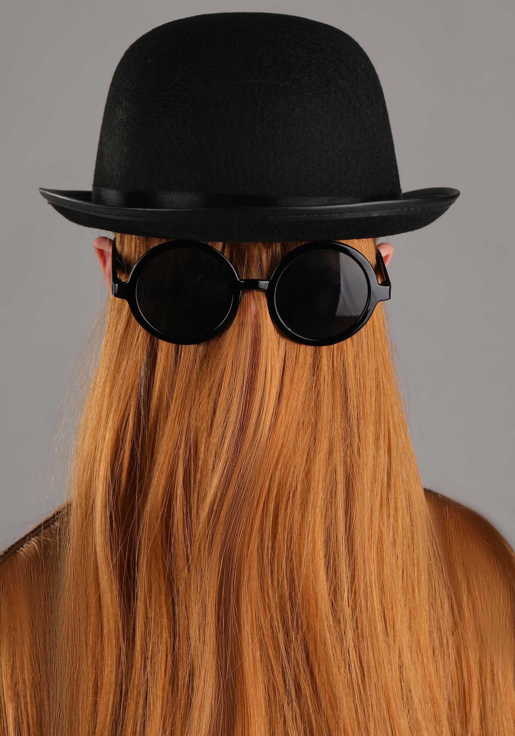 A black bowler hat perches right on top, giving that finishing touch of vintage Addams flair. The included dark sunglasses are worn over the hair, staying true to the iconic 1960s look and making your kid look like they’ve just walked out of a black-and-white episode—and possibly into your living room without a word.