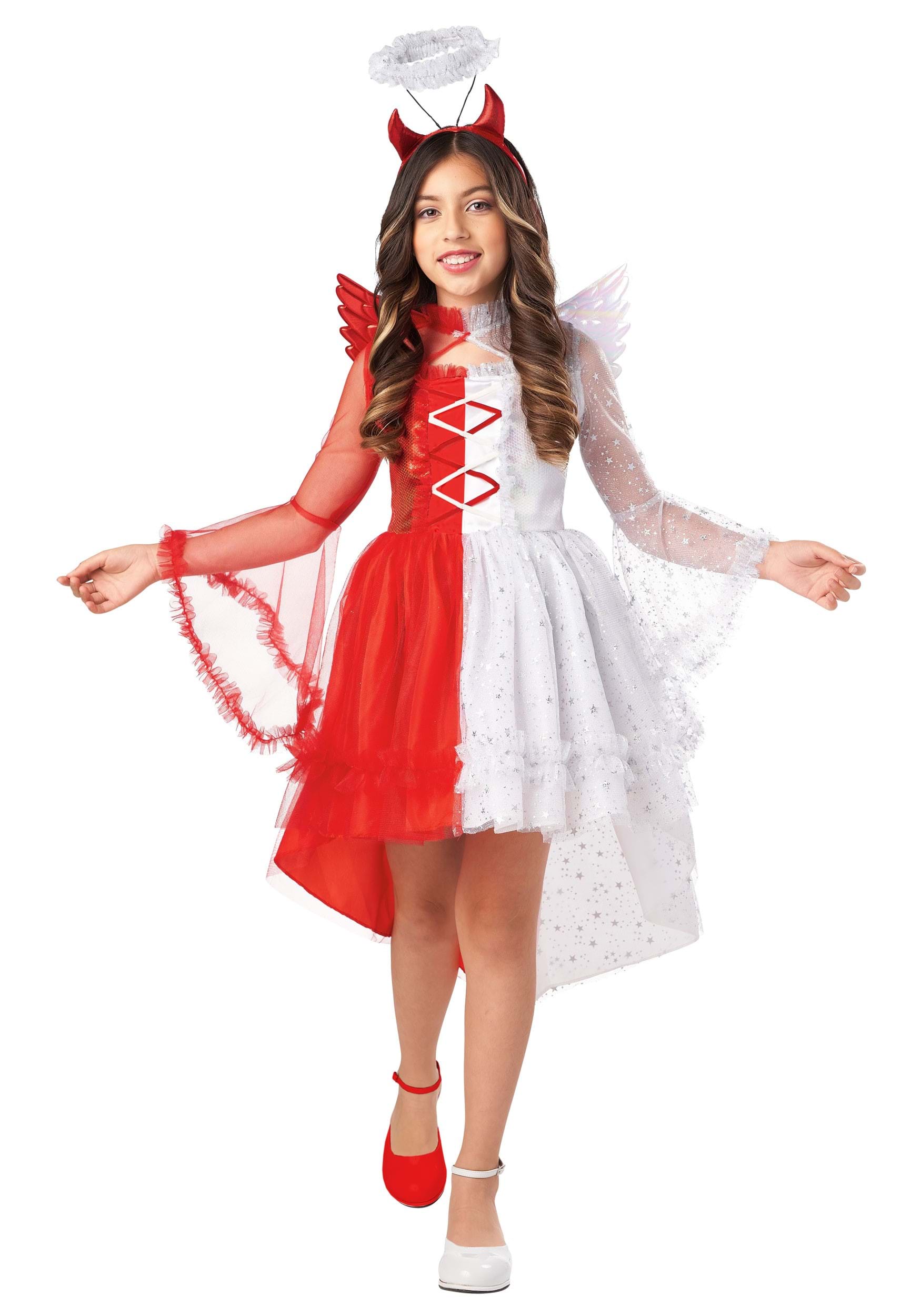 It can be hard to resist chanting "trick or treat, smell my feet" at the neighbors or jumping out from behind a tree to give their younger sibling a good scare. Luckily, for kids that want to indulge in both the mischief and manners of Halloween or simply can't decide if they want to be an angel or devil more, our exclusive Kid's Angelic Devil Costume Dress is here!
