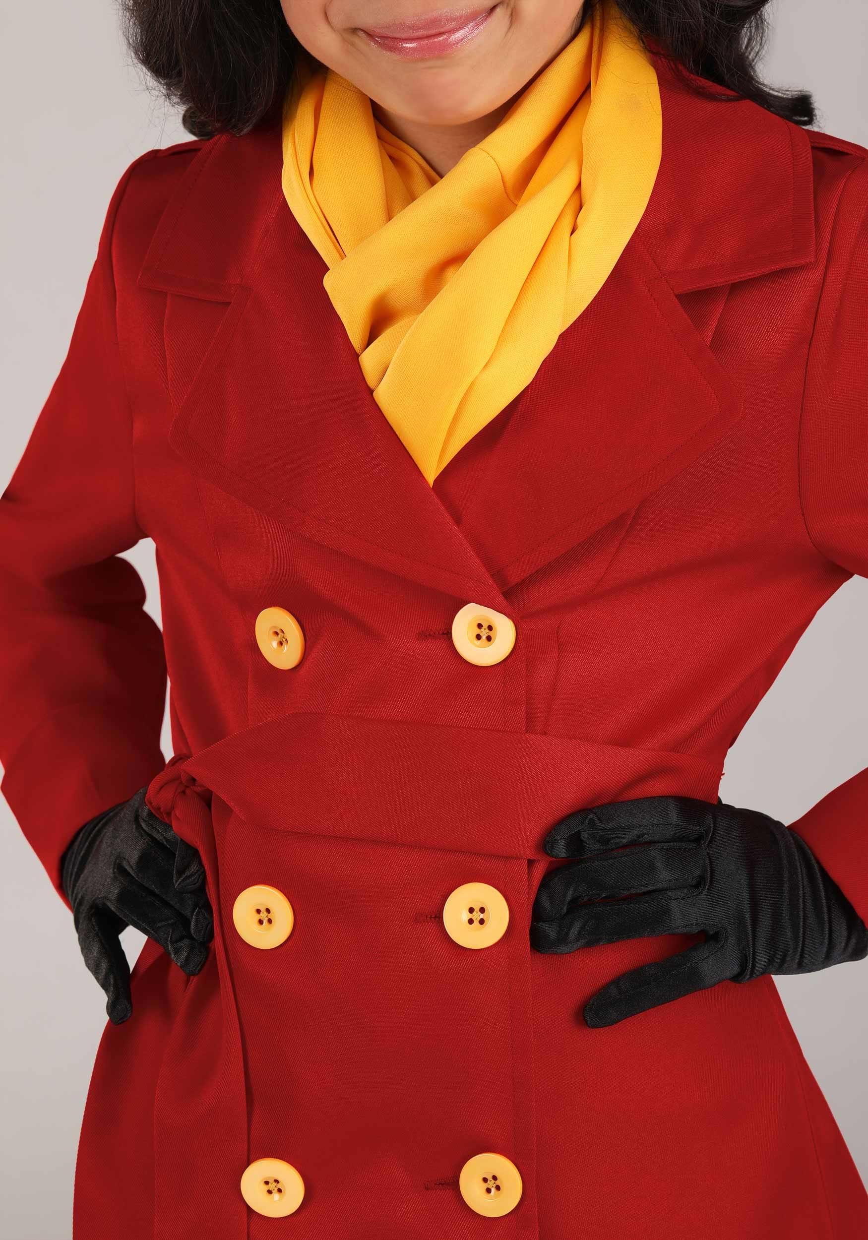 This epic outfit is all a young agent needs to look like this beloved and enigmatic character. The crimson trenchcoat has two rows of buttons to fit Carmen Sandiego's style as well as a matching belt to keep it cinched together. The yellow infinity scarf provides an extra splash of colorful sophistication but the whole ensemble comes together with the hat! Foam-backed to maintain its shape, the extra wide brim and yellow hat band complete this whimsical ensemble!
