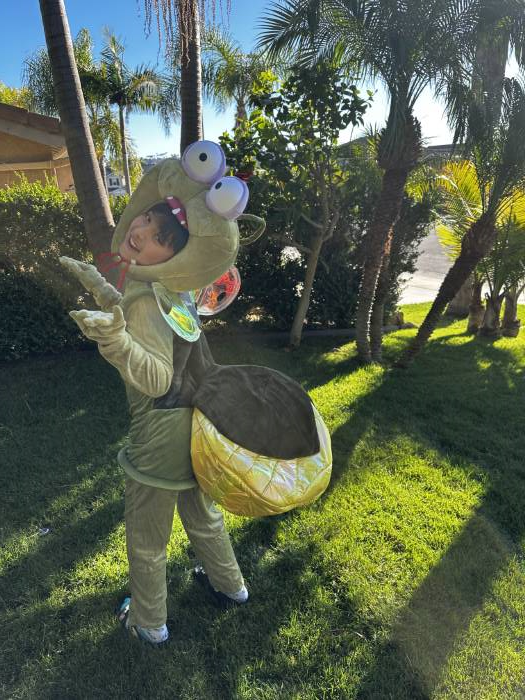 - Iridescent woven fabric and foam lantern sewn on the back of the jumpsuit, minky and foam wings lay over the lantern