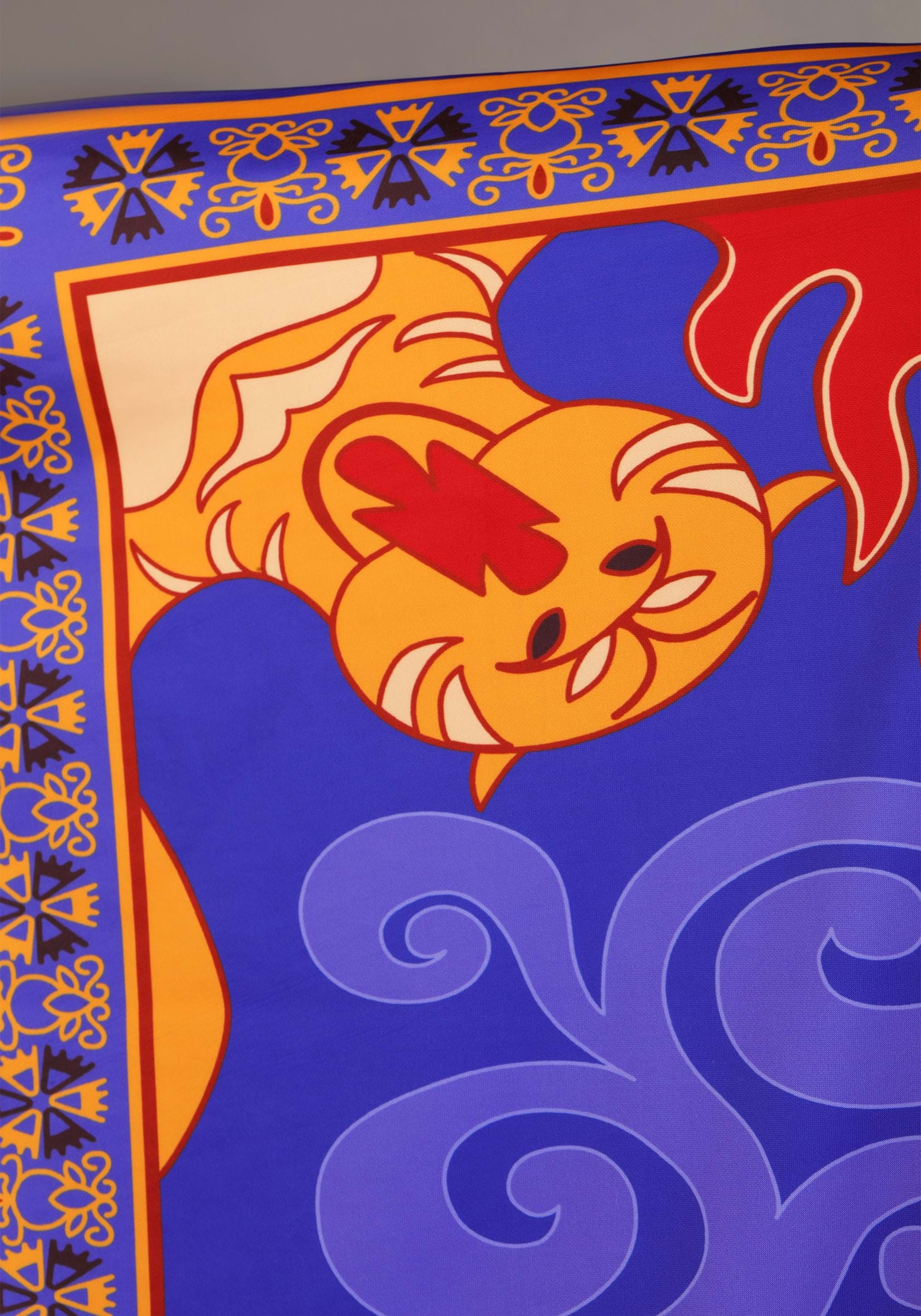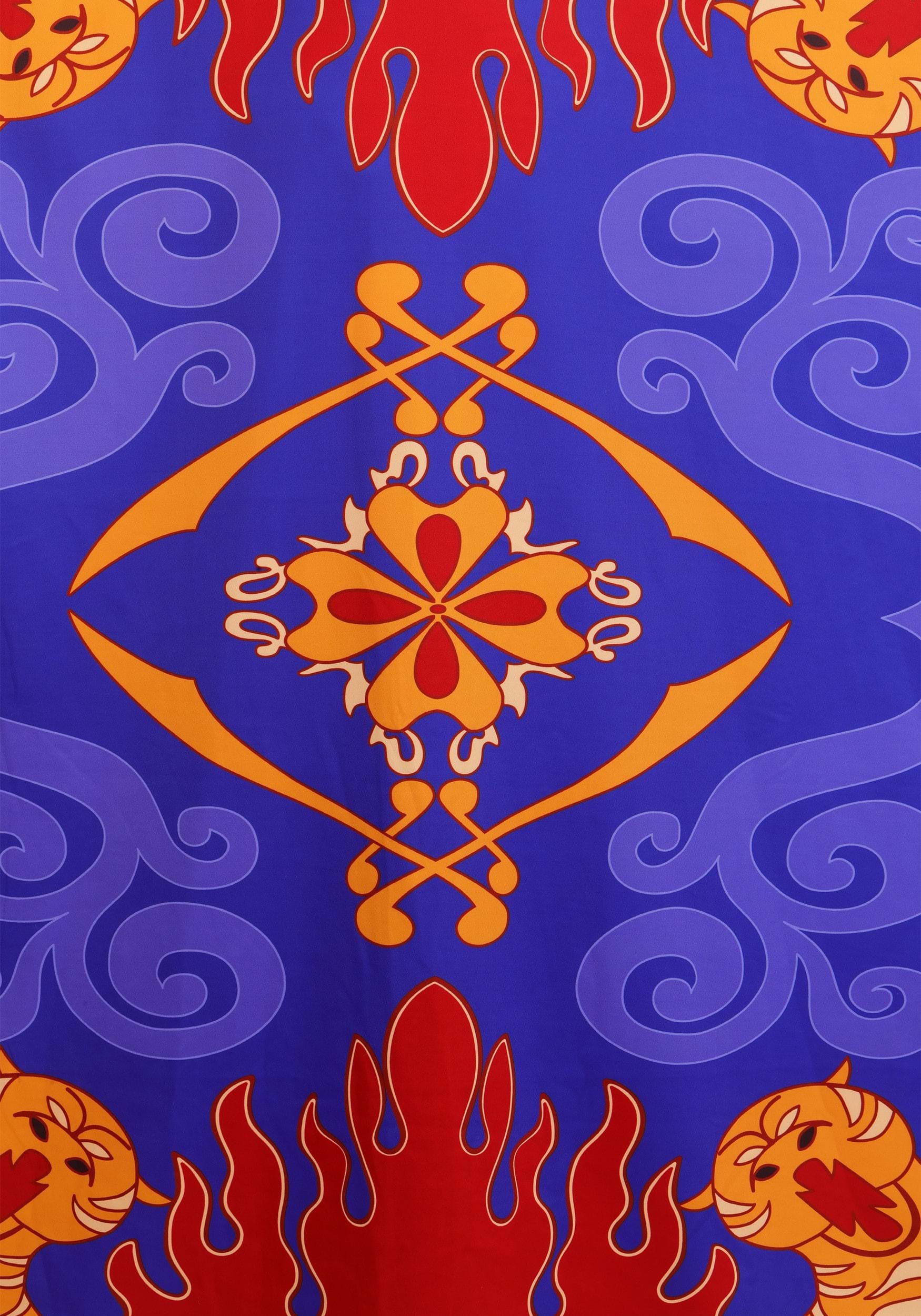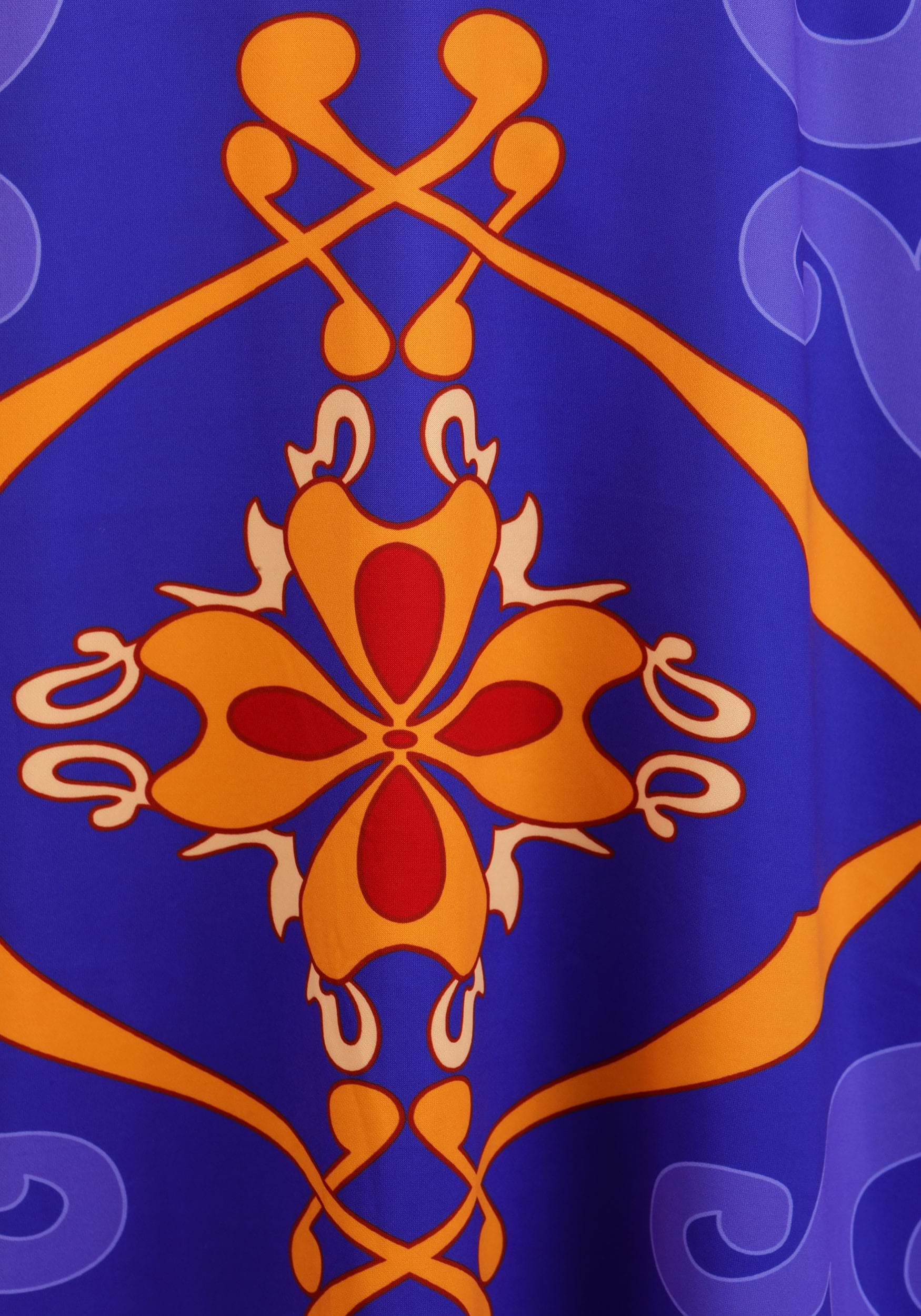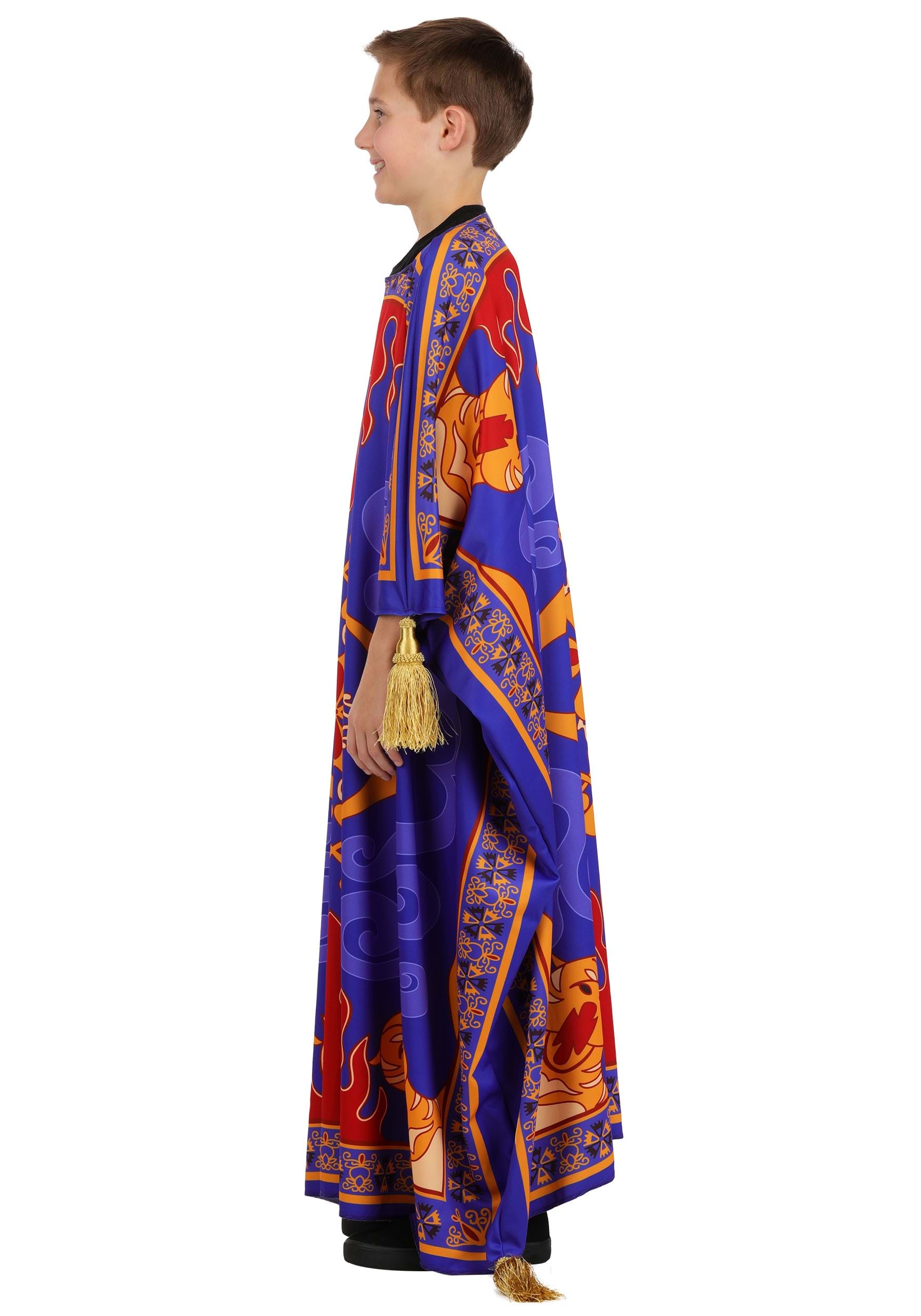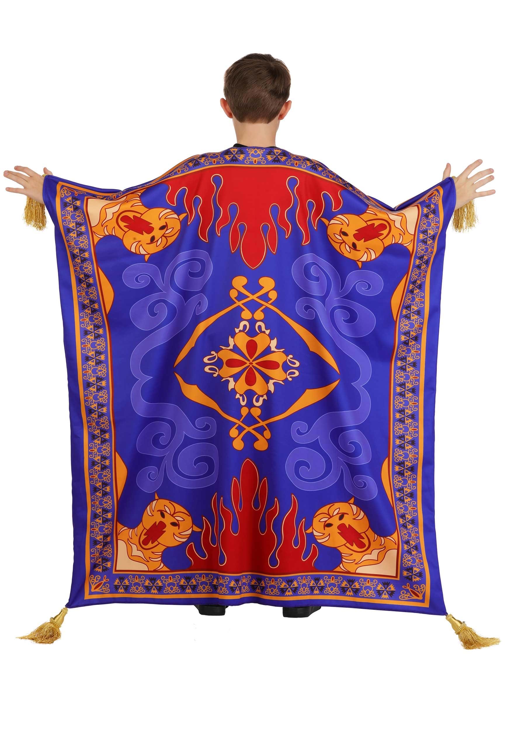 This pullover tunic costume is designed with vibrant, all-over printed graphics that match the whimsical patterns of the animated Magic Carpet—front and back! Lightweight jersey knit fabric keeps it easy to move in, while the golden tassels sewn at each corner add that signature enchanted touch. Slip it on in seconds and let every spin feel like a flight above the desert.
