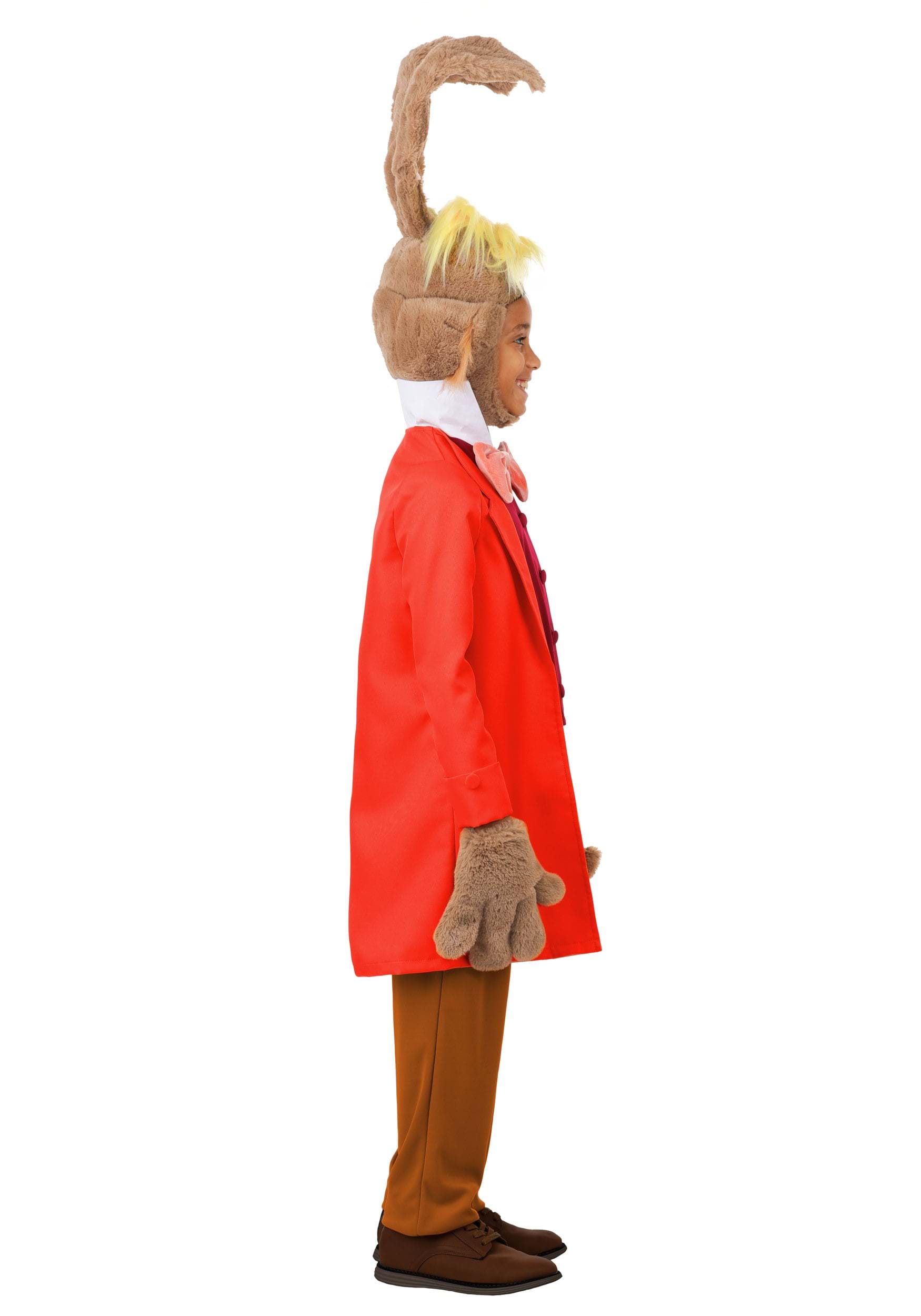 Your little one will look hoppin' cute in this March Hare Costume for kids! The soft, fluffy hood with big bunny ears is just the start. The bright orange jacket and matching red vest with a bowtie add a fun, dapper touch. With stretchy brown pants and gloves shaped like paws, this costume is both comfy and full of Wonderland whimsy.