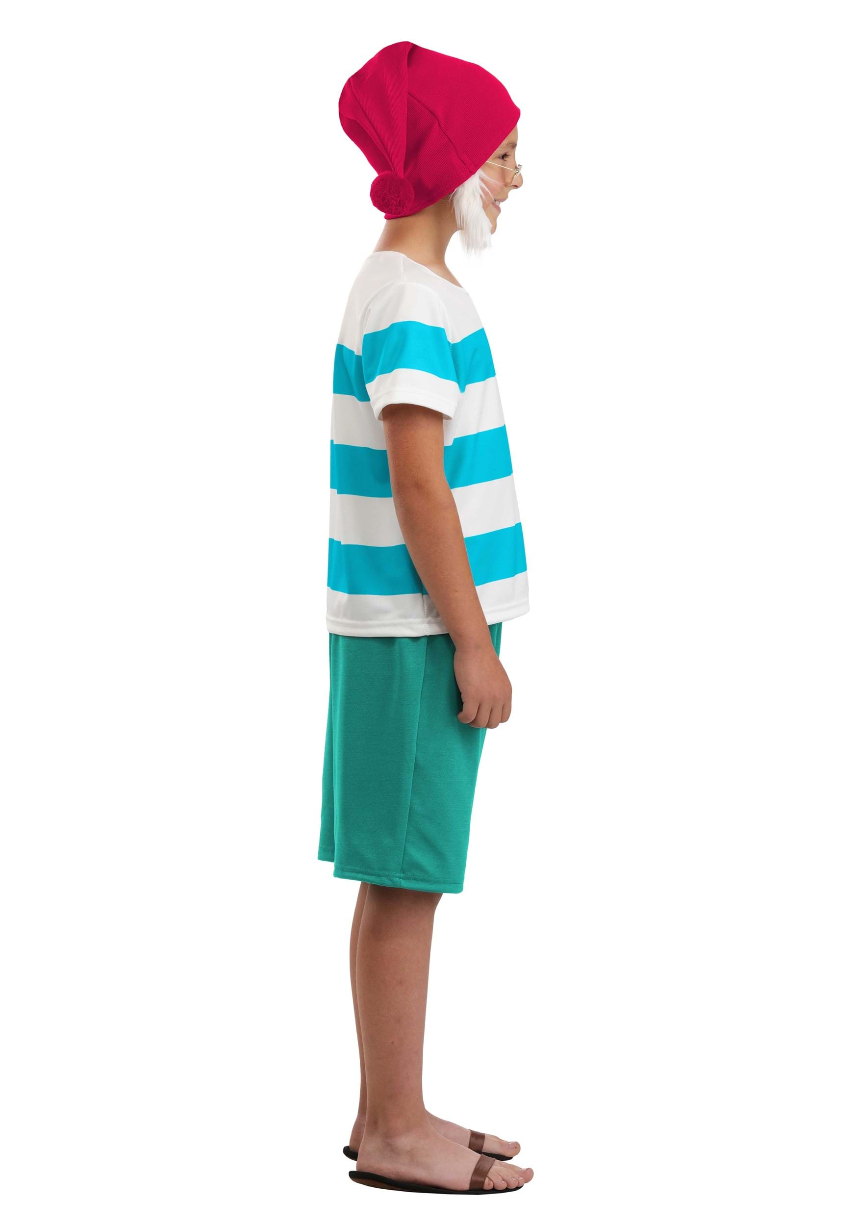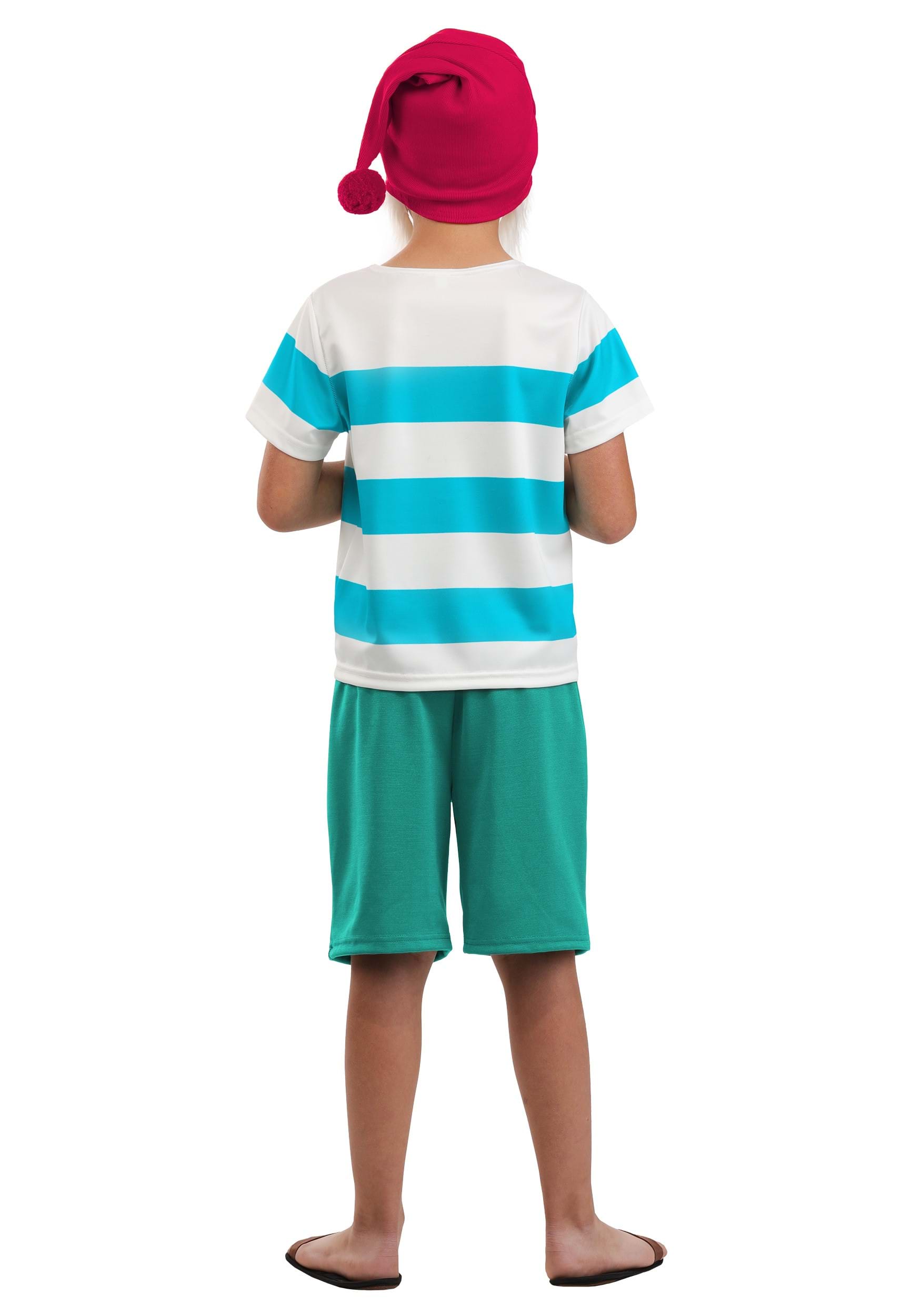 The stretch jersey pullover shirt showcases bold blue and white stripes, offering all-day softness and ease. Comfortable jersey knit shorts include an elastic waistband at the back for a flexible, secure fit while on the move. Topping off the ensemble is Mr. Smee's recognizable rib knit hat, complete with a plush pom and attached faux hair secured with a hook-and-loop fastener. This easy-to-wear costume is ready for adventure!