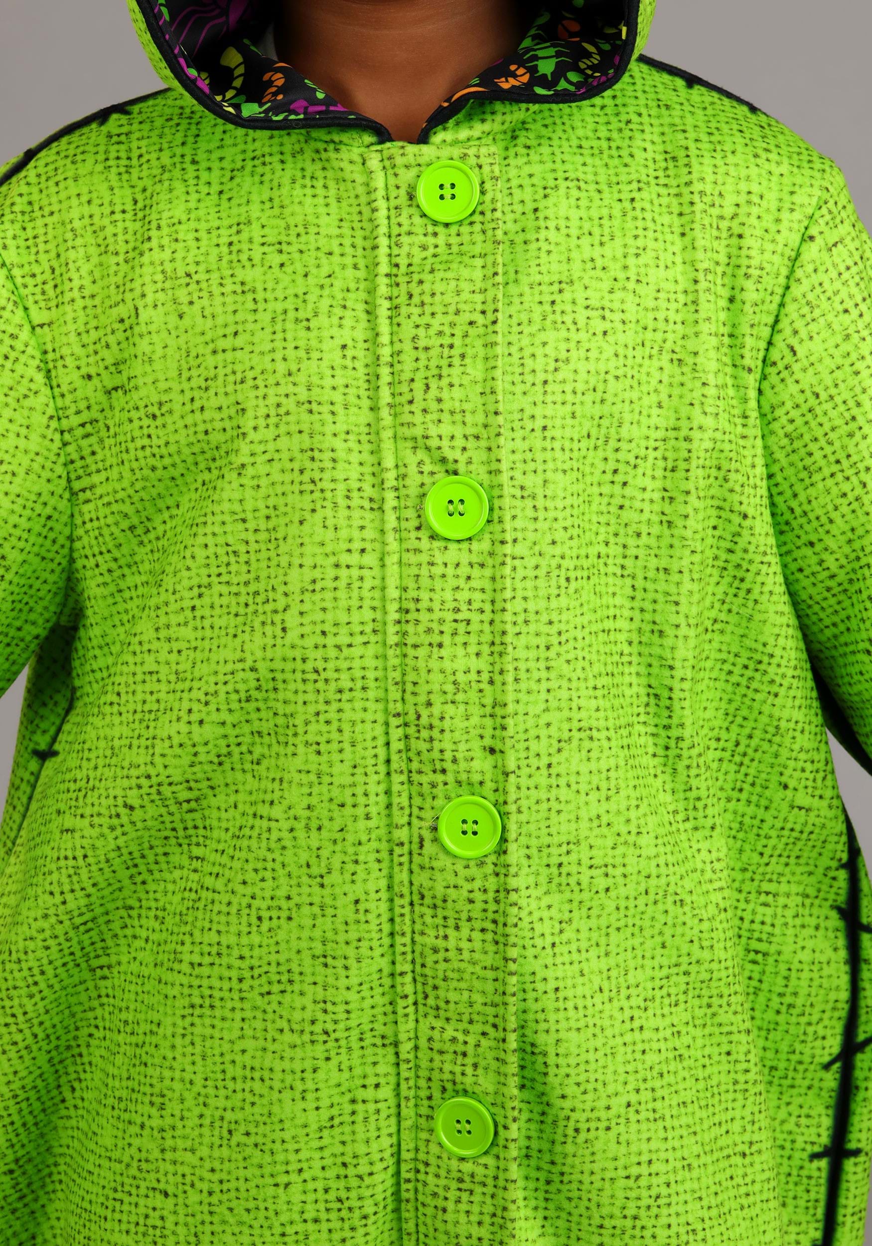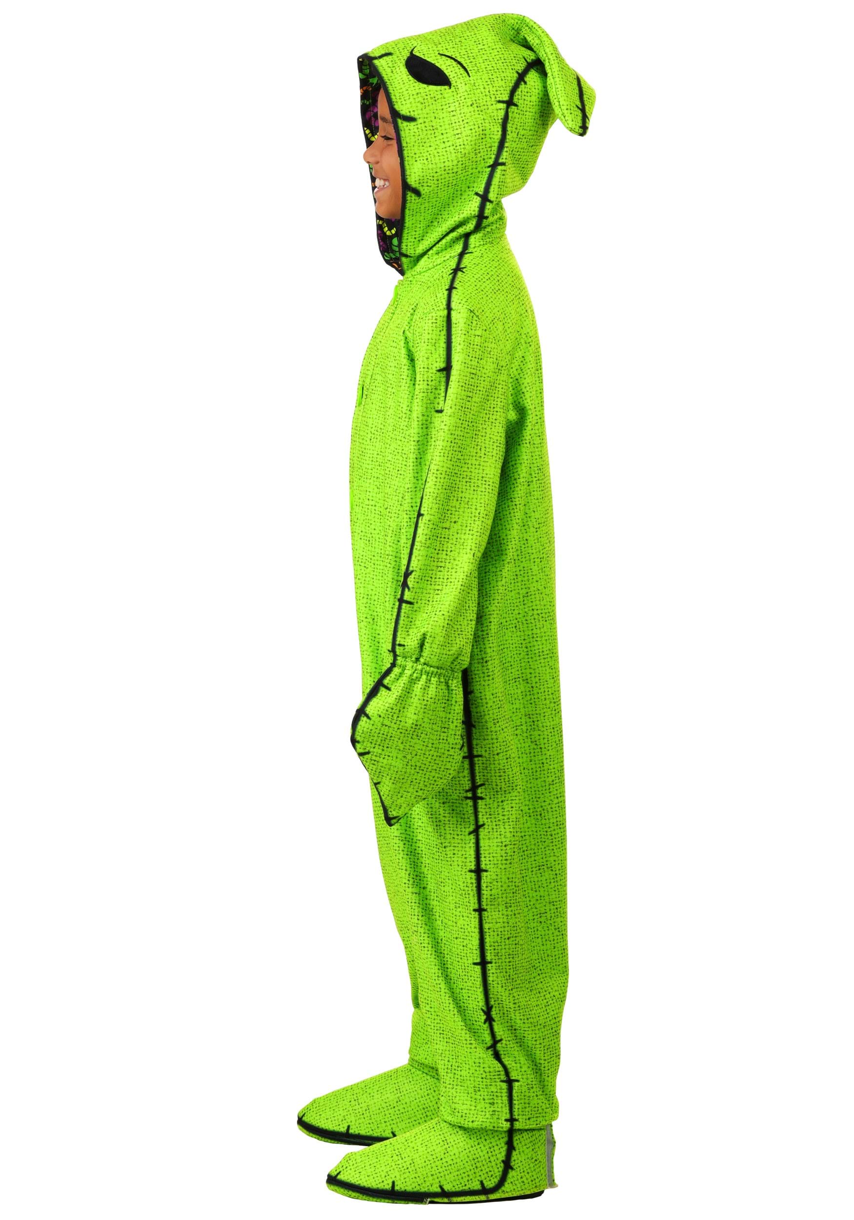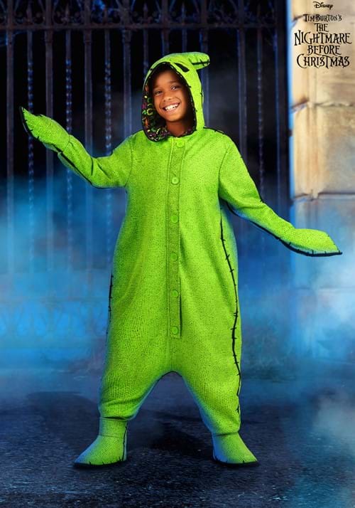 The soft fleece jumpsuit has a burlap-look print and stitched details, while the hood features embroidered eyes and a cool bug design inside. Flip-back gloves and cozy booties make it easy to wear and move around in. A perfect costume for young fans who love the creepy charm of this beloved Halloween-themed movie!
