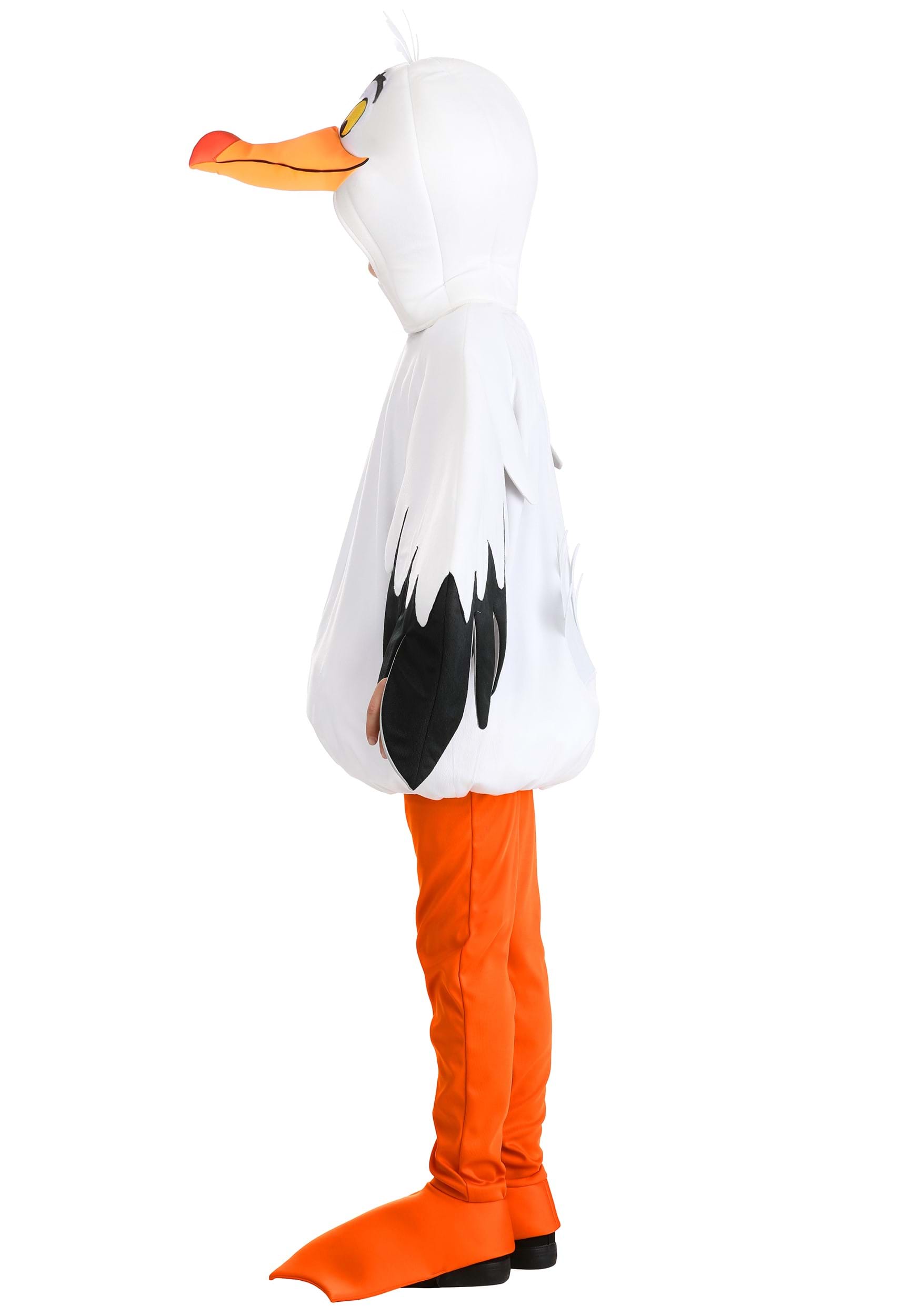 The white bodysuit, complete with large, wing-shaped sleeves, captures the character's seagull body. The orange pants are designed to mimic Scuttle's charmingly awkward legs. The attached shoe covers recreate the style of seagull feet. Topping it all off is the headpiece, carefully designed to look just like the character's head!