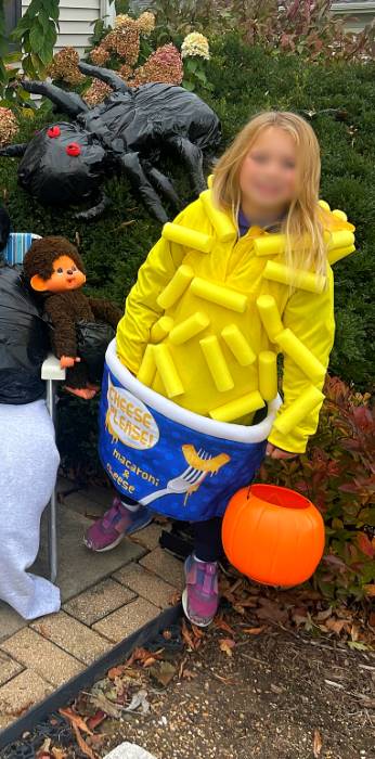 We got this costume last year for my Mac and Cheese Loving Kiddo! It is definitely one of my favorite costumes. My advice would be if you purchase, just have a glue gun, as some of the foam noodles can come off, but it was an easy fix.Bottom Line Yes, I would recommend this to a friend.Was this review helpful to you? - Great Costume!By Jackie S | November 9, 2022