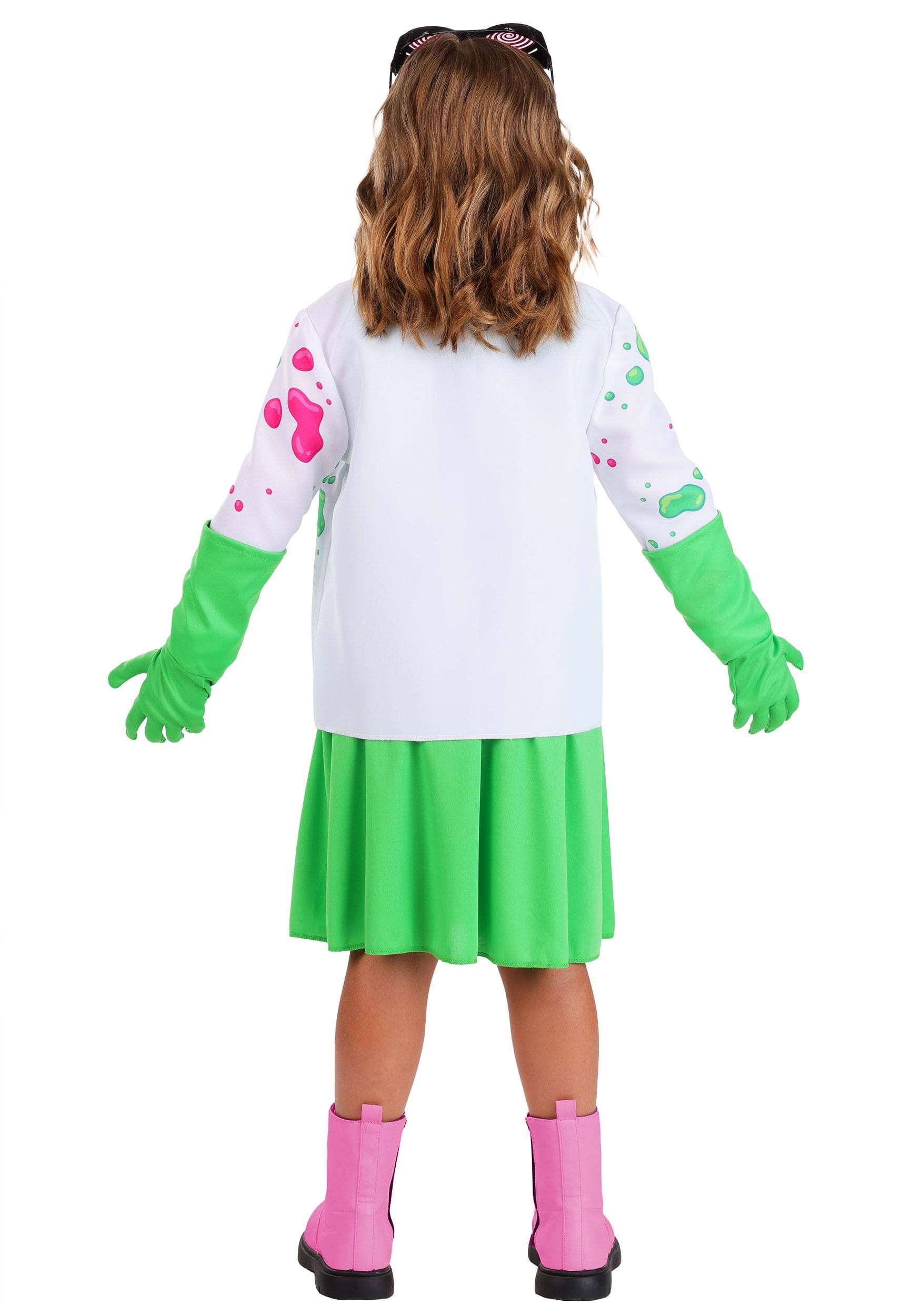 This costume is a Made by Us exclusive, which is design to satisfy the curiosity of any would-be mad scientist. The costume comes with a dress that looks like a wild suit top, with a two-tone pattern and a printed necktie. The skirt portion is a bright green that looks like an experiment in and of itself! The lab coat fits over the dress and has tons of science-related details. It has a printed lab rat, test tubes, periodic table elements, and plenty more on it. The costume also comes with a pair of green gloves to round out the look. To top it all off, the included goggles have swirly lenses on the front to really give your child the mad scientist look!